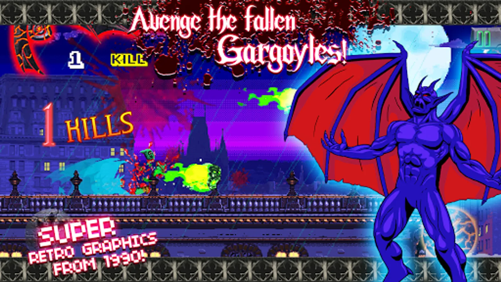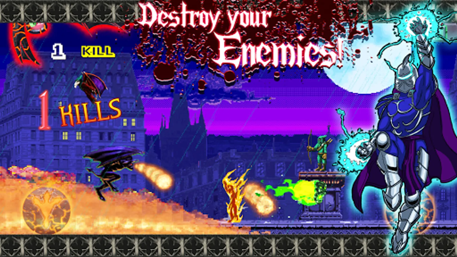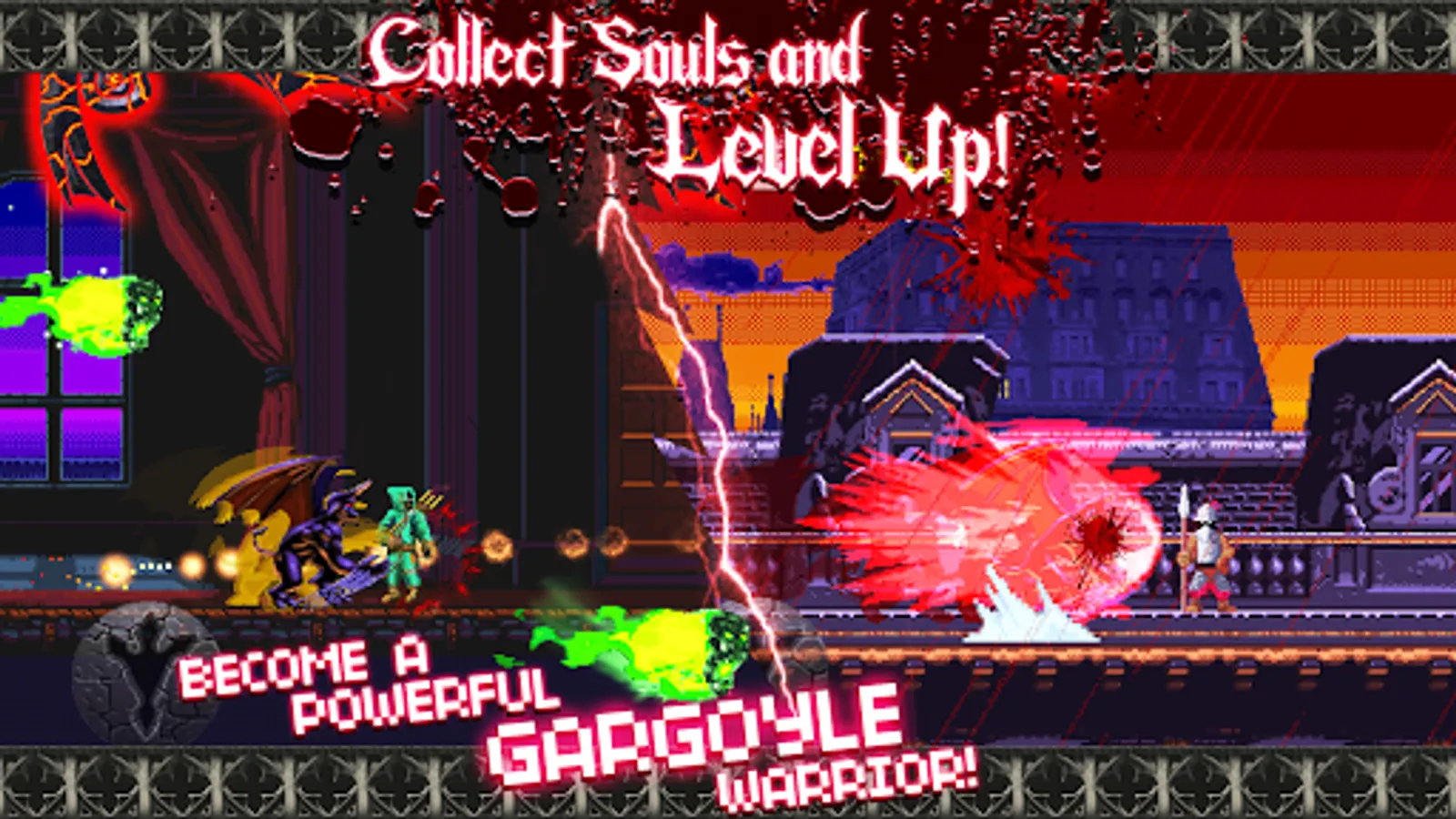 The curse of the blue moon is lifted and the blood rush begins; freeing immortal crown harbinger Gargula from an eternity in a cathedral stone tomb. Rage across rooftops; Fight, slash, Fire breath and hunt your way across the Gothic castles as a Reaver of Souls. Possessed Archers, Knights Templar with Golden Axes, Sorcerers, Mages, evil Gargoyles, Vampyre, Chimera and Barbarians; leaving a trail of bloodstained and mangled flesh in the fallout of your rogue legacy.