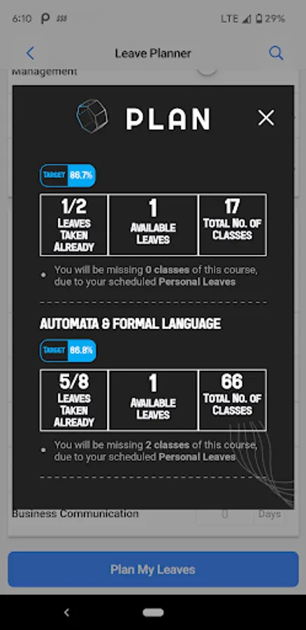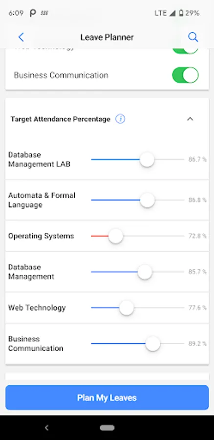 Plan your leaves on the go with the KiiT Unofficial Student Leave Planner. Without your SAP Portal, simulate and calculate number of days you can be absent to achieve target attendance in individual subjects through an intuitive application and immersive UI experience.