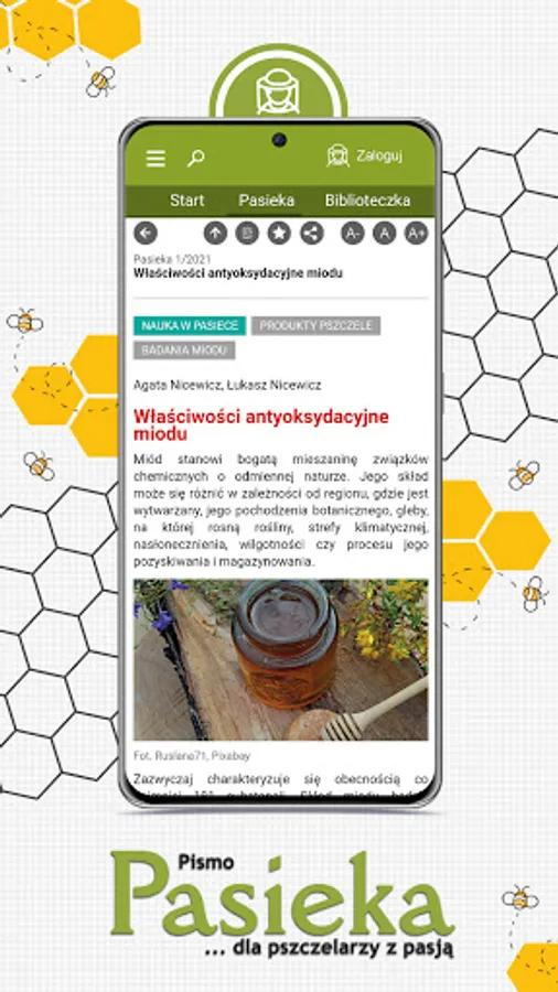 The application allows you to read excerpts from books and magazines by Wydawnictwo Pasieka on a smartphone or tablet with the Android system. To read articles without an Internet connection, it is enough to display the articles on a mobile device in advance. The application allows you to search an extensive database of Apiary articles and books. To log in to the Pasieka 24 application, use the subscriber's login. Users who are not logged in will be able to view the content of books and journal articles in excerpts.