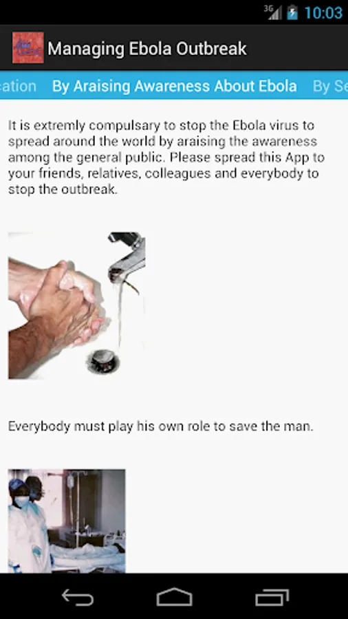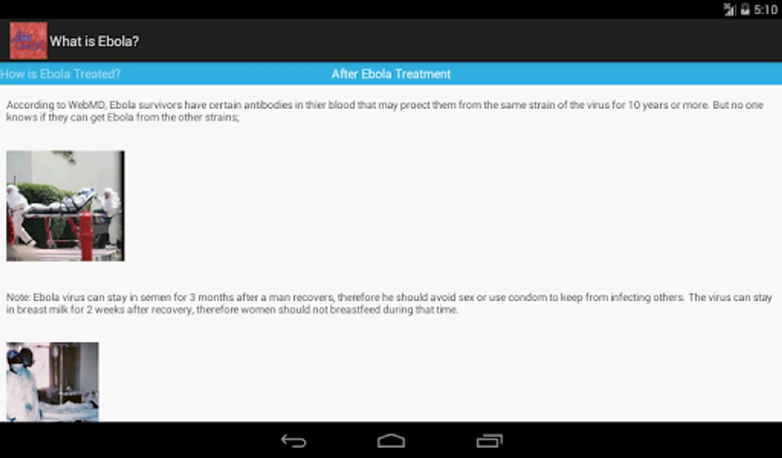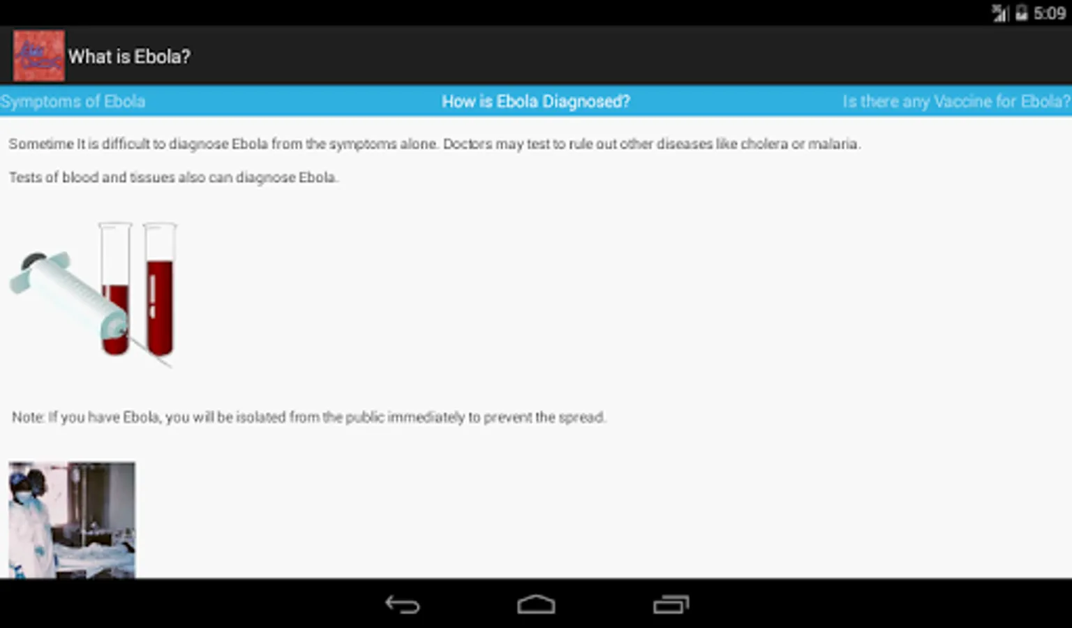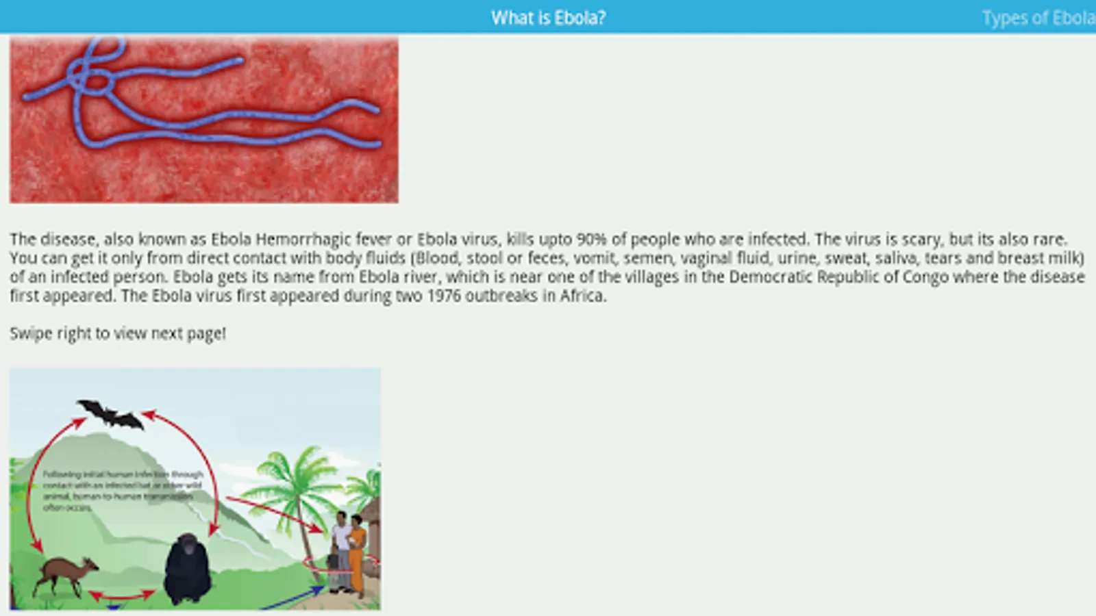 Therefore, join us by using this App to save the man from Ebola virus. Keep in your mind, this is only a guide. Consult with your healthcare provider urgently about your health plan related to Ebola disease.