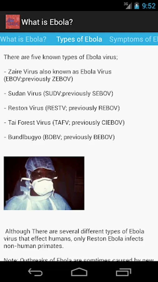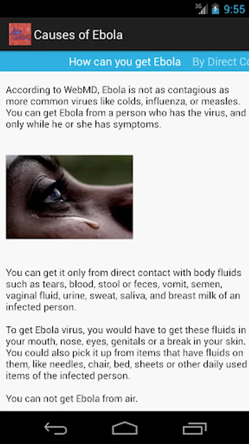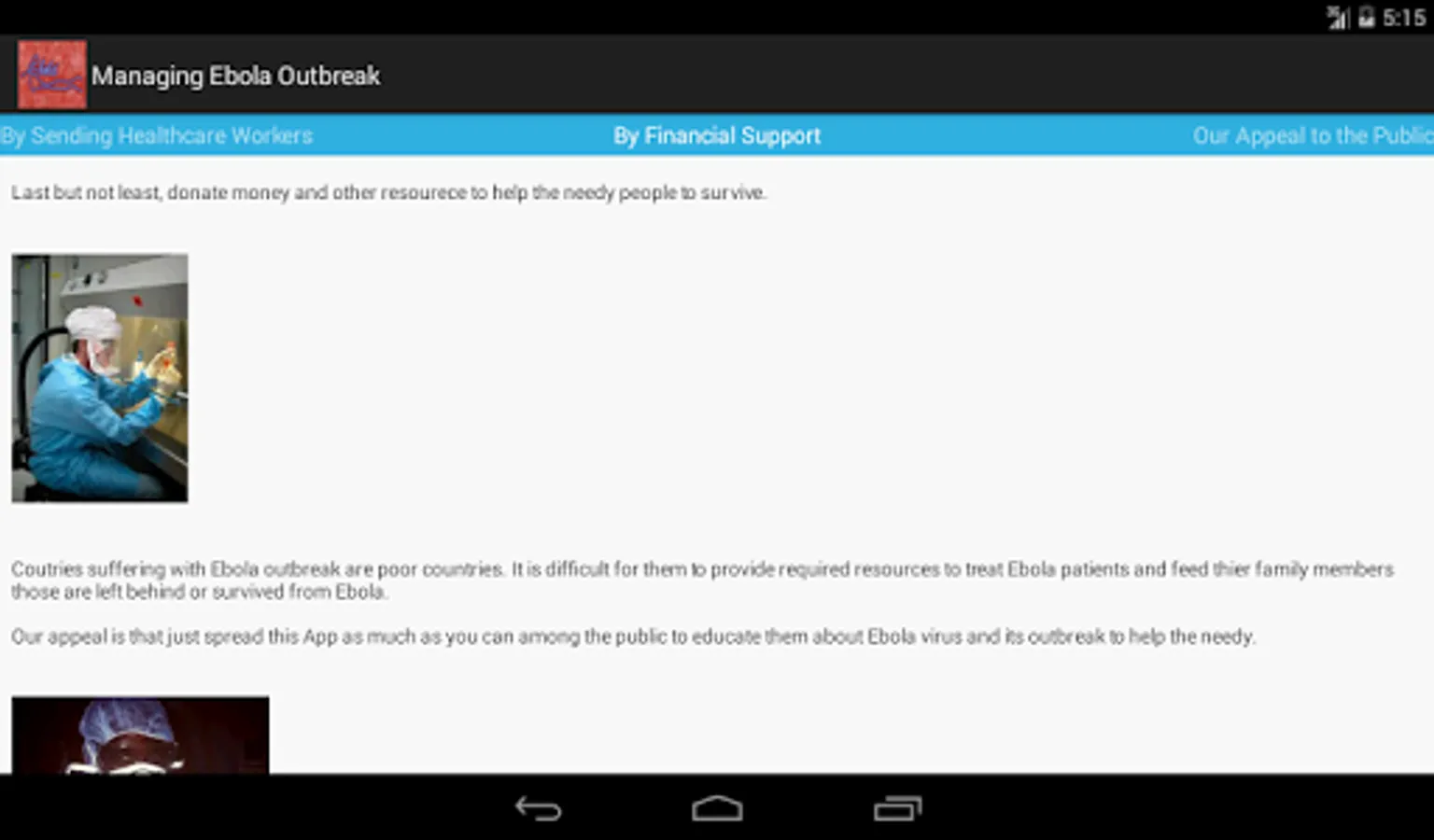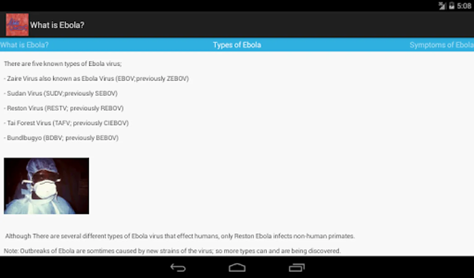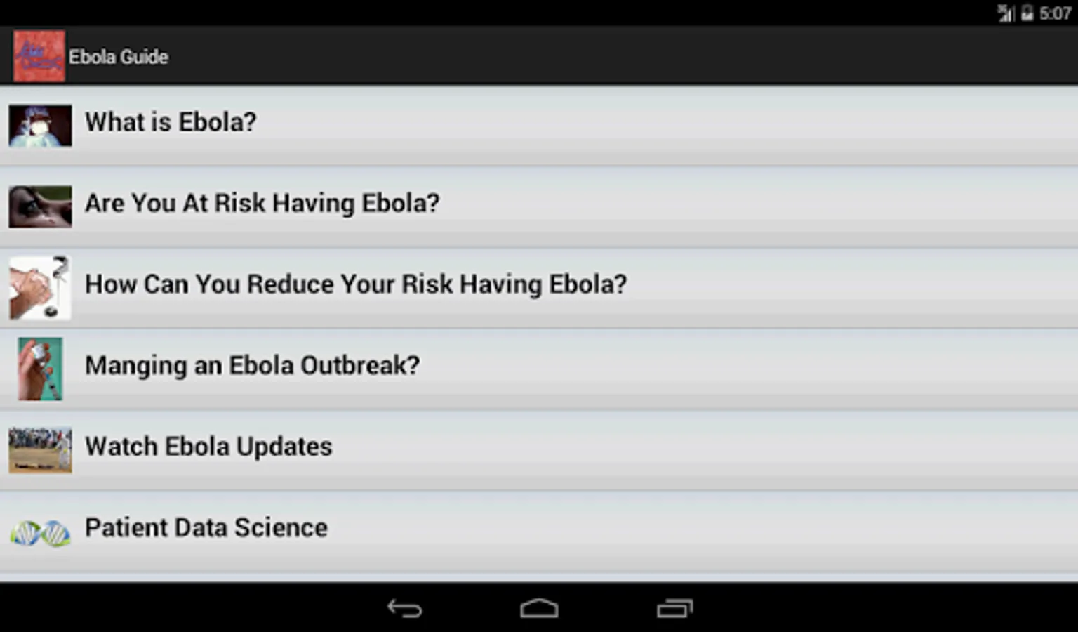Therefore, join us by using this App to save the man from Ebola virus. Keep in your mind, this is only a guide. Consult with your healthcare provider urgently about your health plan related to Ebola disease.