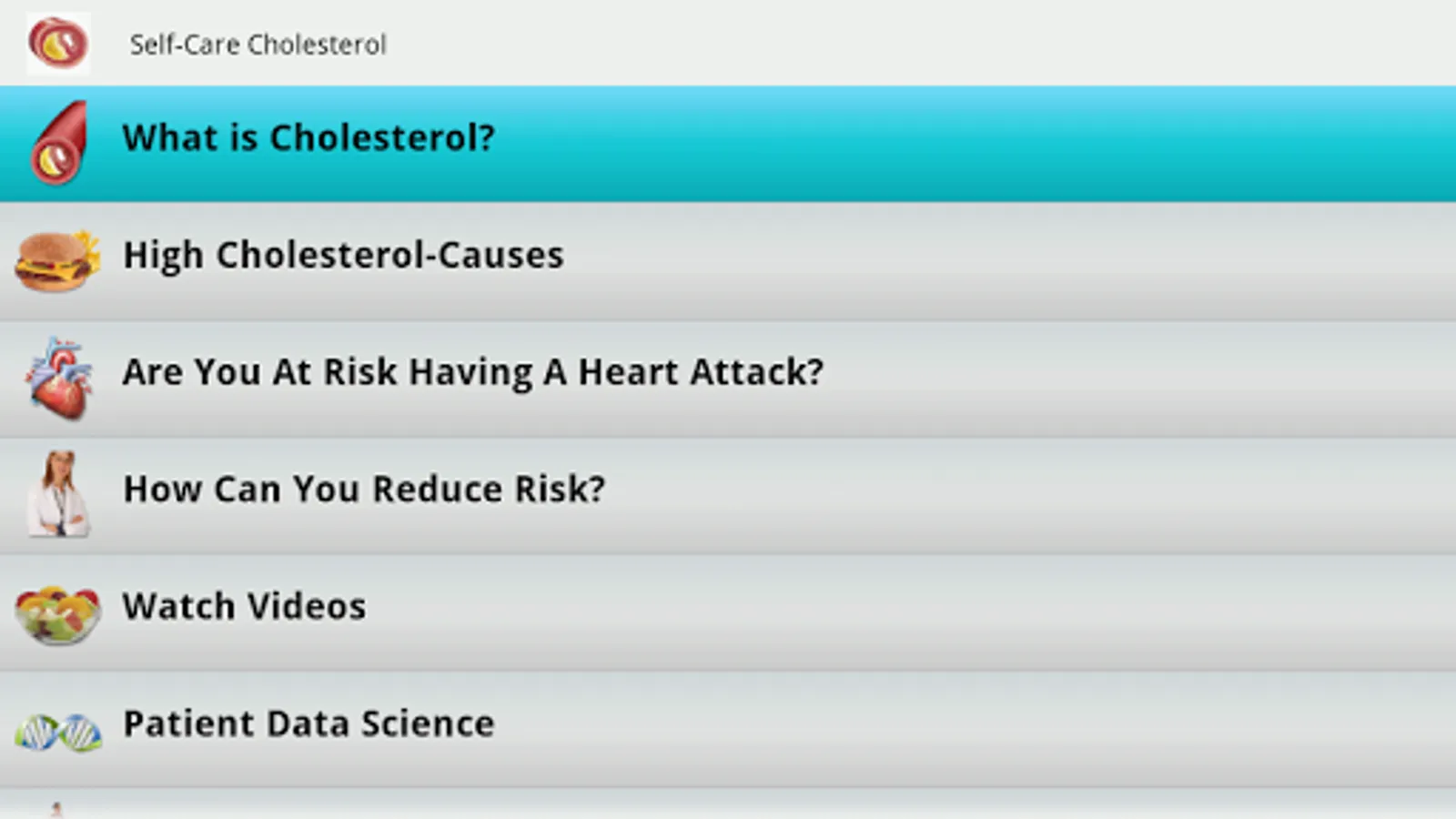 Fortunately, if you have high blood cholesterol, there are steps you can take to lower it and protect your health. This App will guide you how to take action.