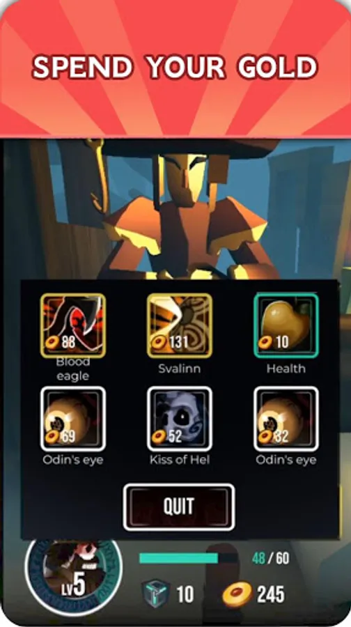 NorthDash is a rogue-lite/action mobile game paced by simple and quick fights. Dive into a devasted Valhalla and brave hordes of dead warriors to fight your way out of this hell. Parry their attacks, ripost with your sword and harass them with arrows. Visit special places like the Fair or the Merchant to upgrade your equipment to help you go further and learn more about this ruthless world.