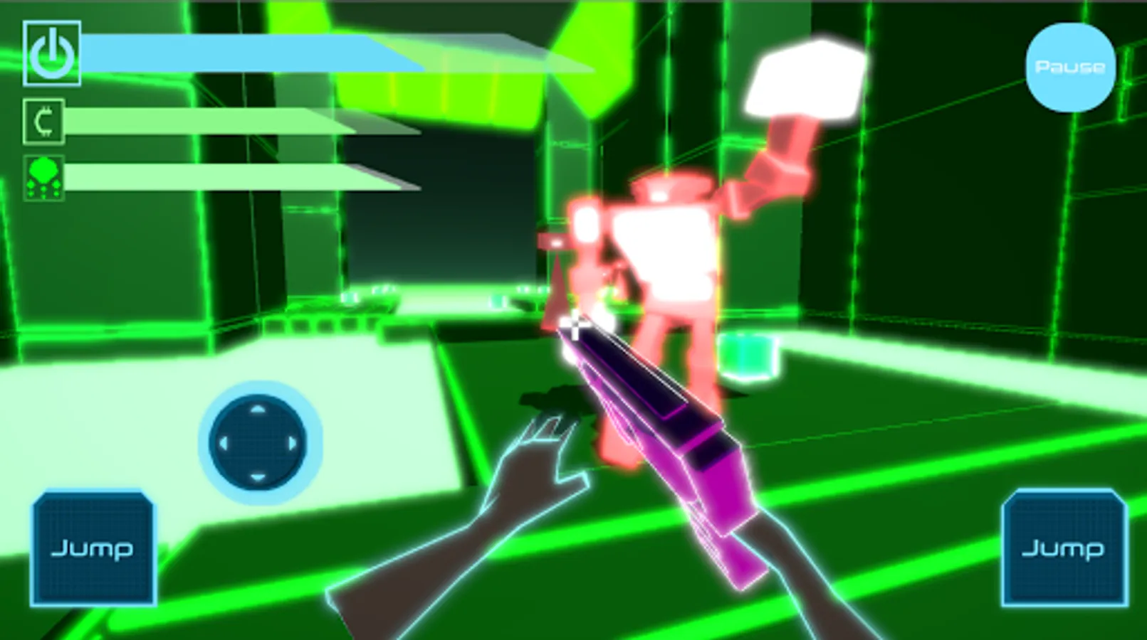 In a future the past forgot, one lone hacker seeks to take down a corrupt mega-corporation from the inside. Take hold of your NeonBolter and dash through the evil AlphaCorp's Ultranet, stealing precious credits and using them to buy new weapons, armor, and more! Explore the everbranching portals of TheMainframe! Leap from building to building in the SkylineSector! Plunge into the green gloom of the CyberTunnels! Battle the endless void of space itself in the OrbitalStation! Exact your righteous vengeance in beautiful retro 80's neon glow!