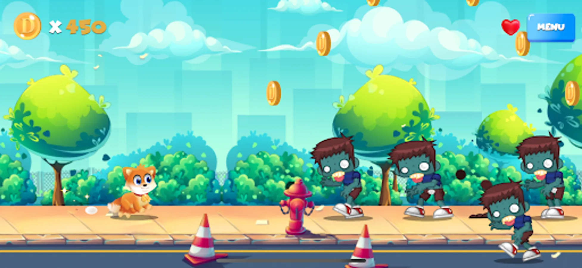 Doge Dash features 10 fun, fast paced levels with the degree of difficulty increasing as the player progresses. Players must navigate over and under platforms, monsters and even a zombie infested City to reach the Dog House and complete the game.