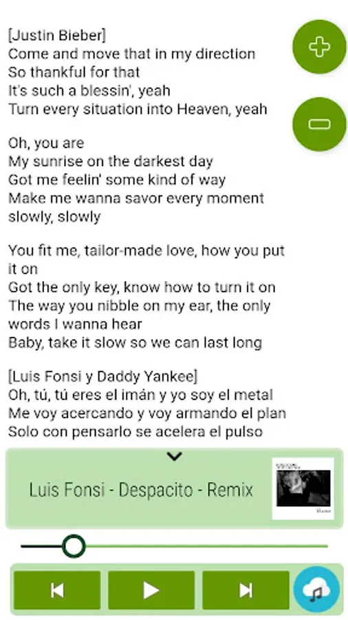 - SLyrics makes use of Spotify API to get the music that you're currently listening to, so it searches the lyrics online and lets you listen to the song while accompanying the lyrics.