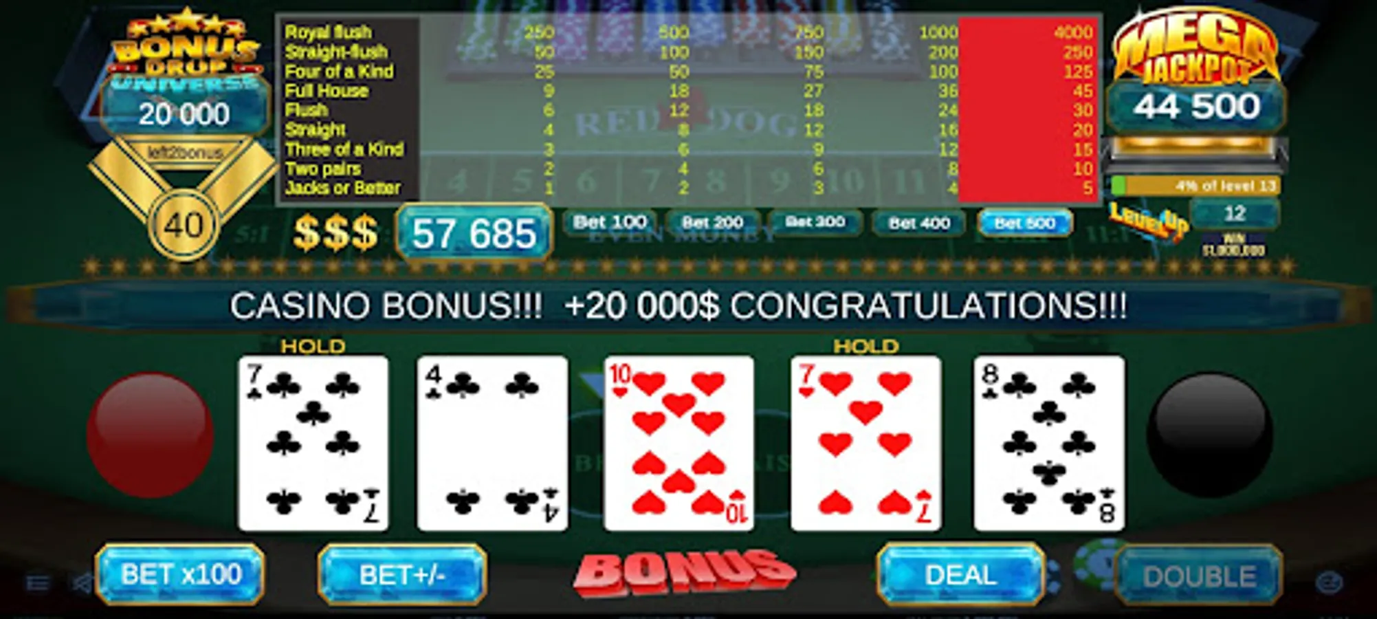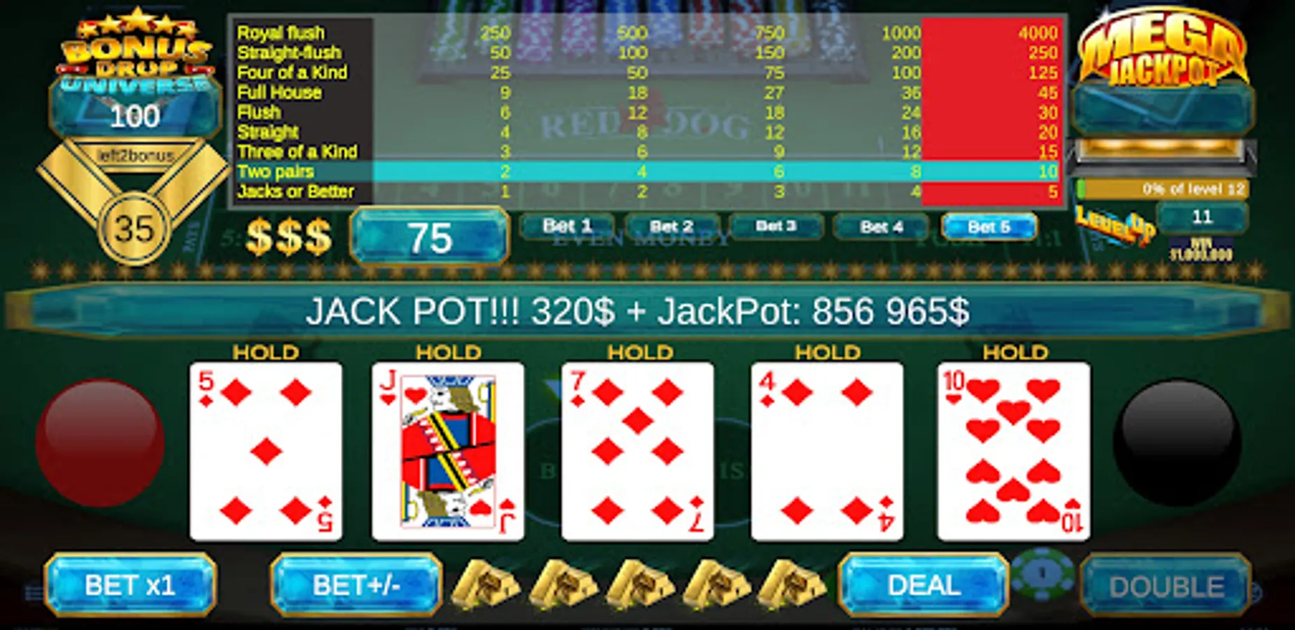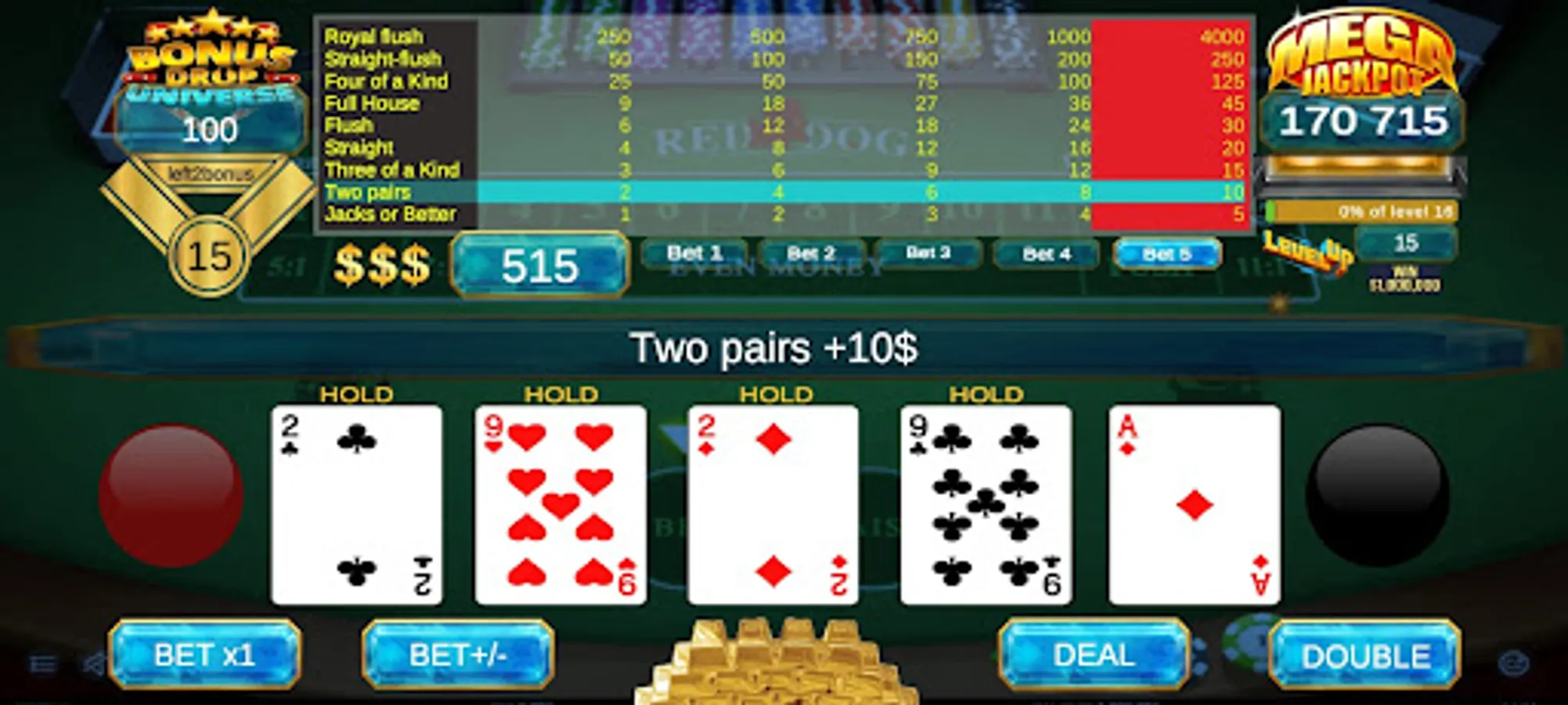 - Так же, как Casino Video Poker - НАСТОЯЩАЯ перетасовка, НАСТОЯЩИЕ таблицы выплат, НАСТОЯЩАЯ раздача