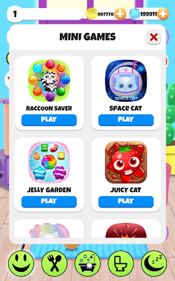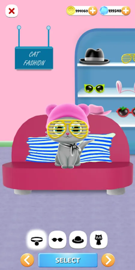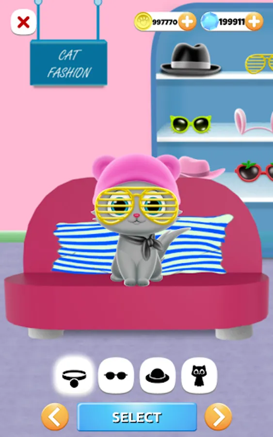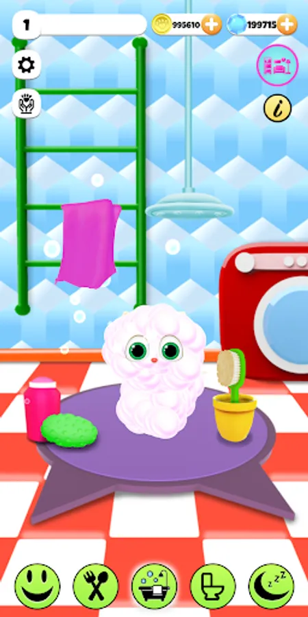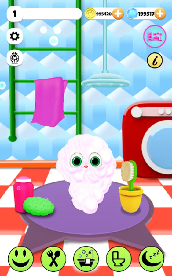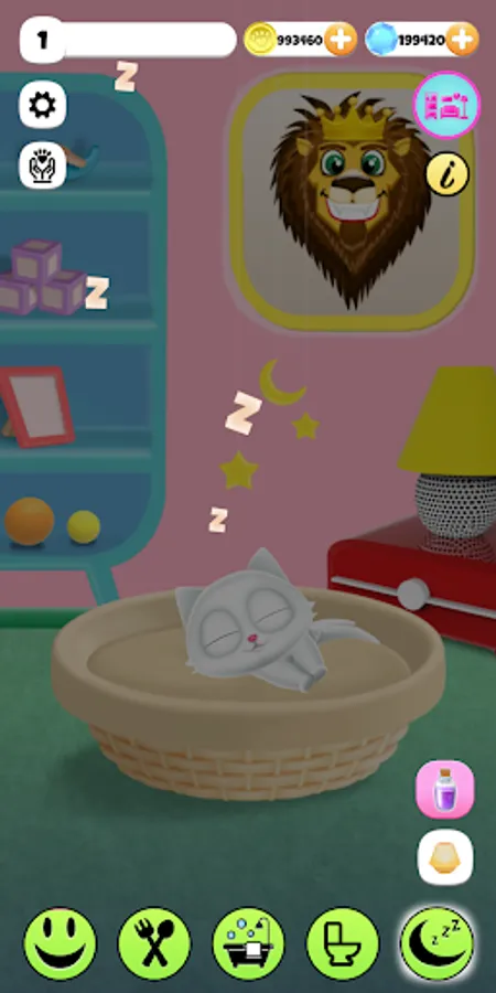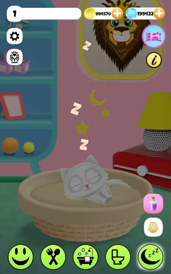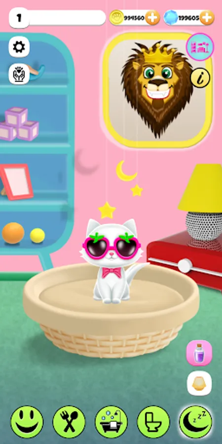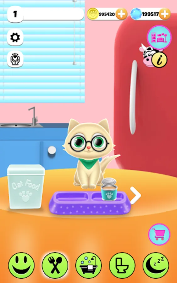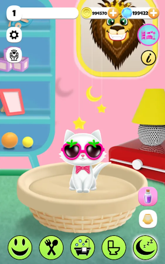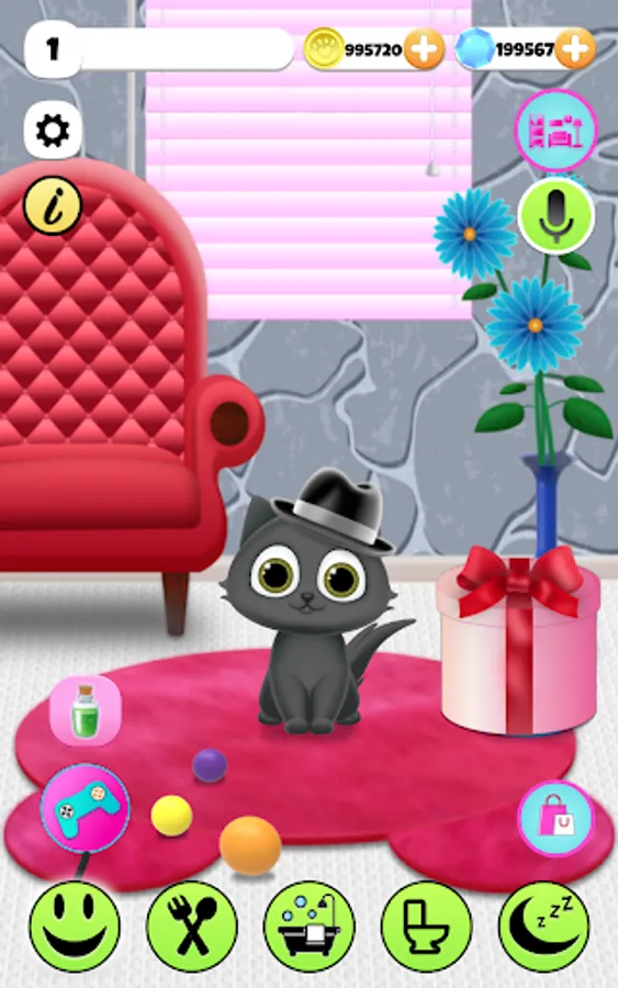 To keep your cute kitten clean and healthy in animal petting game, you can take it to the veterinary, lay it to sleep in its own bed, and give it a nice various colored bubble bath. While these responsibilities help you collect paw points and diamonds in the game, you can use the paw points in pet store to take care of all your pet friend's needs and give it gifts to make it happy. While you help it grow, you can enjoy having a very cute virtual pet and talking animal.