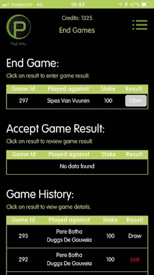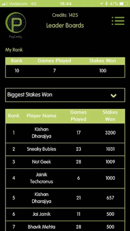 You can also use the app to keep score of you career record of wins and losses against your friends and see how you compare against the global PayCaddy users.