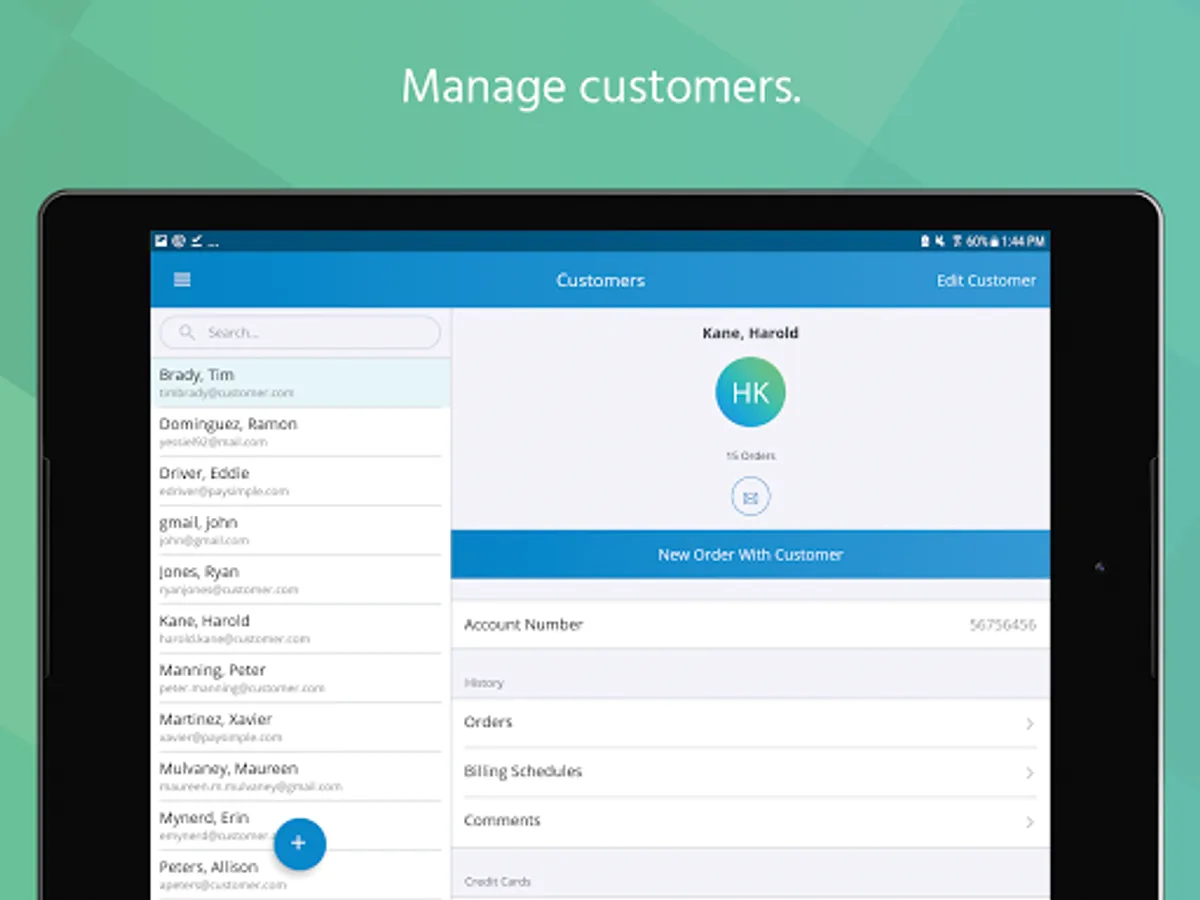 PaySimple allows you to grow your business and by accepting payments, streamlining billing, and managing customers anytime, anywhere. Collect credit card and ACH payments for single or multiple items in an order from your mobile device or tablet with a few simple clicks.