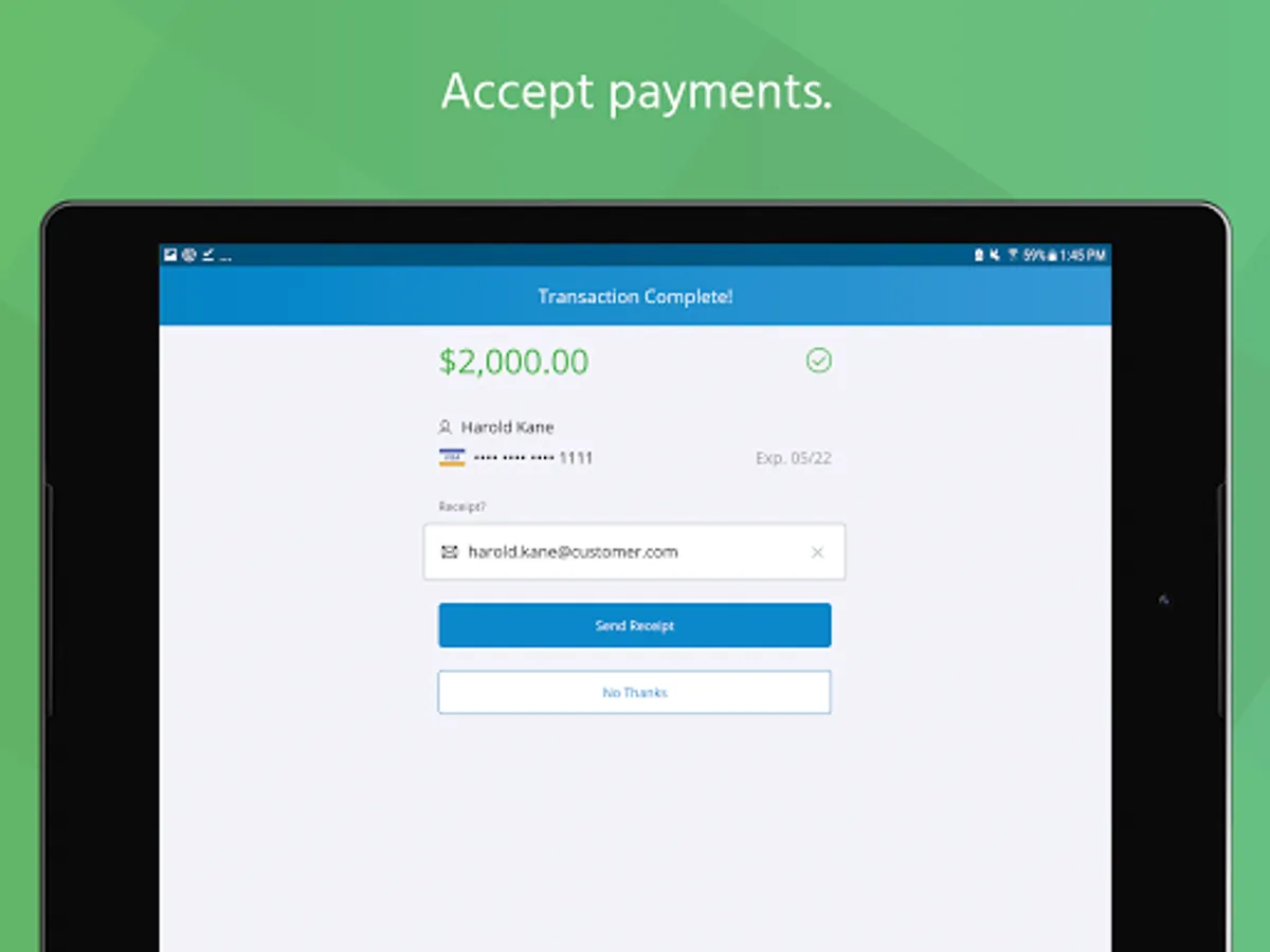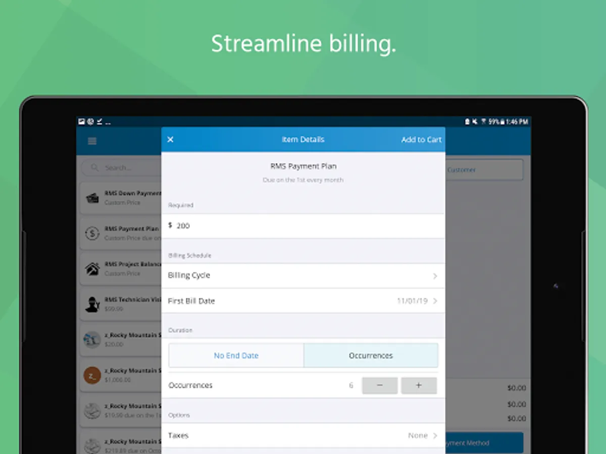 Create items in your PaySimple web account and log-in to the PaySimple mobile app. Simply choose which items are being purchased on any mobile device and enter the credit card or ACH information (via key-in or card reader) for a quick and seamless checkout experience. You can also create and manage recurring billing schedules and manage customer information through our powerful mobile app.