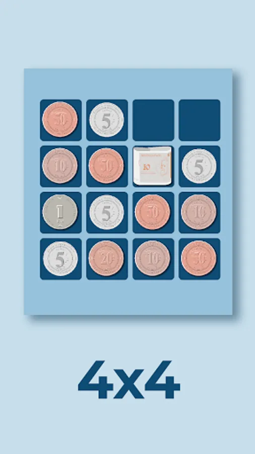Coins are joined by swiping, in 4 possible directions - up, down, left and right.