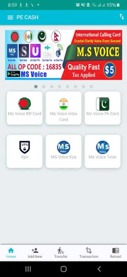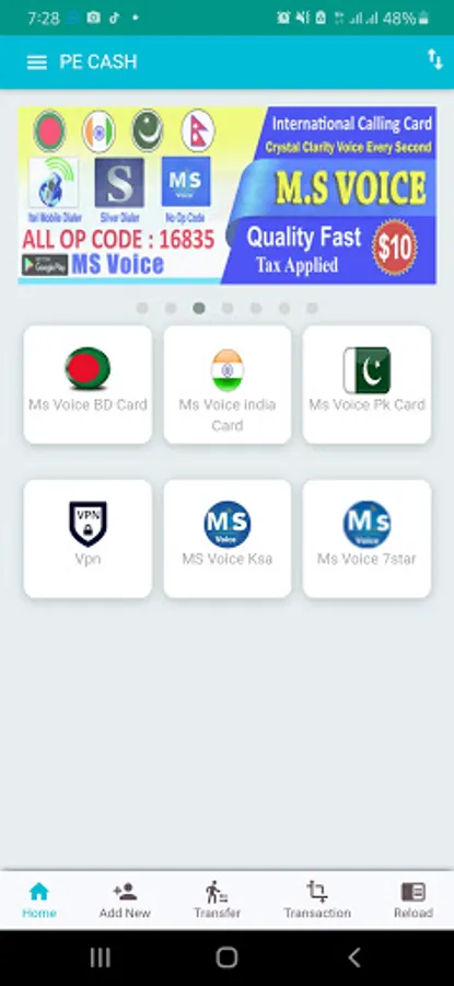 Pe-cash Calling Card Mobail To Screenshots