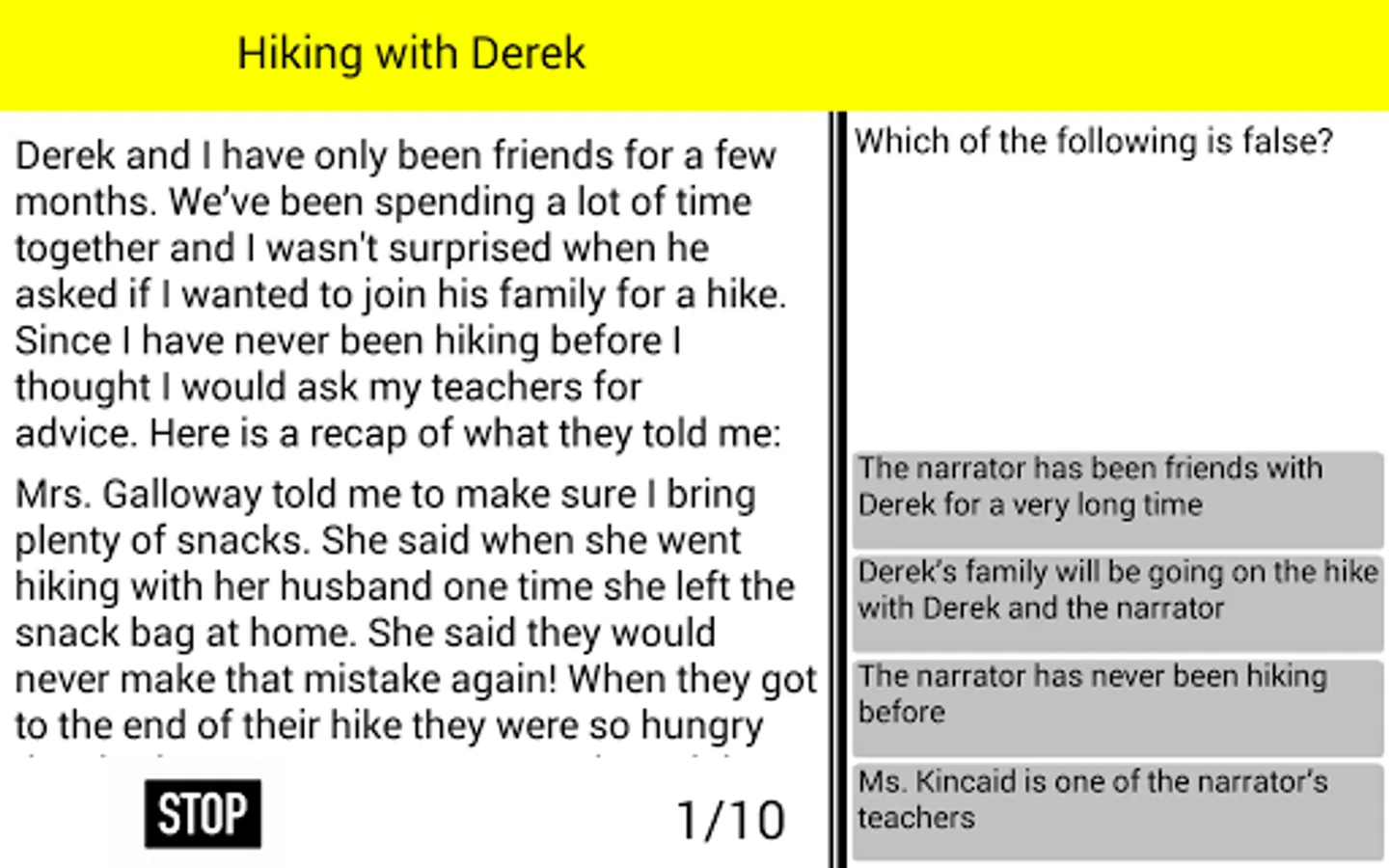 - Read through a range of different stories and test your comprehension with a variety of questions about the selected passages