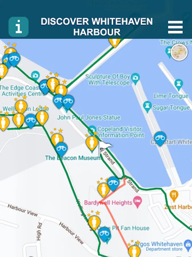 The West Cumbria with the Beacon Museum app allows you to explore Whitehaven and West Cumbria through various trail routes. Use the GPS enabled map in the app to track your location and seek out exciting augmented reality characters and interesting content along the way.