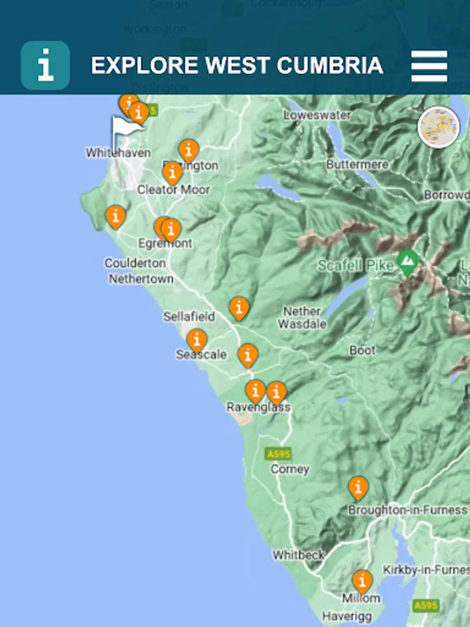 • GPS enabled map for wayfinding purposes around Whitehaven and West Cumbria