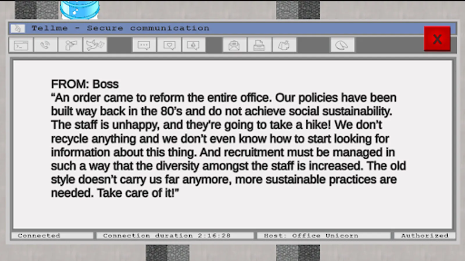 You’ve got a message from your boss! He gave you an unexpected task to change your office into a better place. Find and complete all the minigames to increase the level of employee happiness. Learn more about sustainability as you make your way through the minigames. If your achievements are good enough, you will be rewarded with unique and amazing unicorns🦄! Can you collect them all? Your choices do matter!