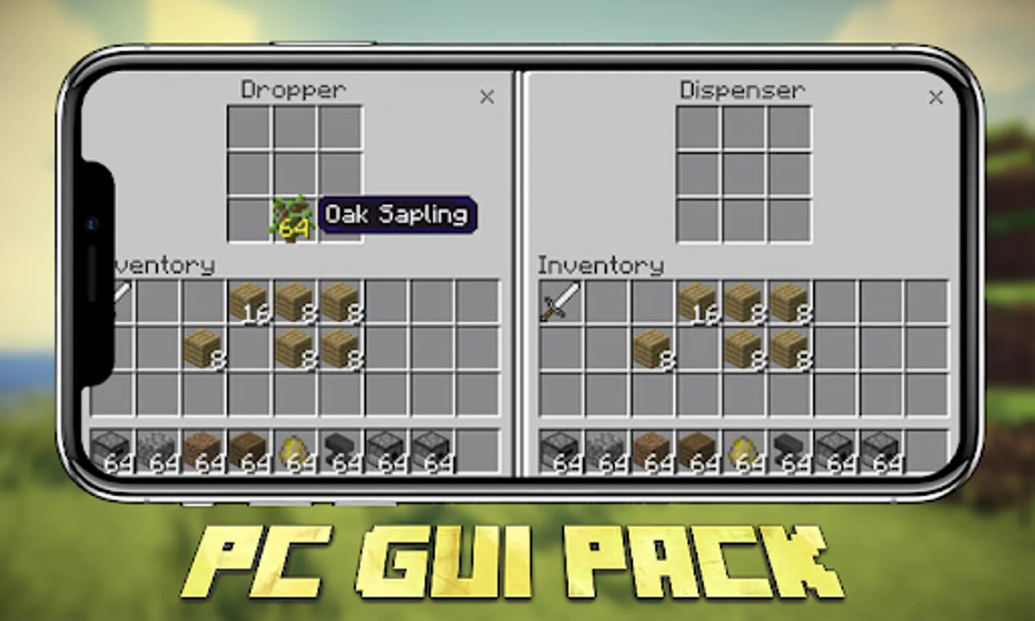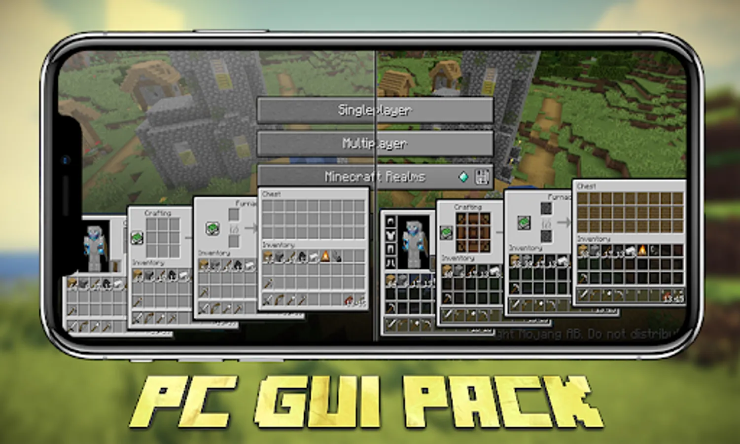 NOTE: Install our free minecraft pocket edition app called PC GUI Pack for Minecraft PE . Install shaders, skins, mods, mini-games, minecraft maps, mcpe addons, wallpapers and much more