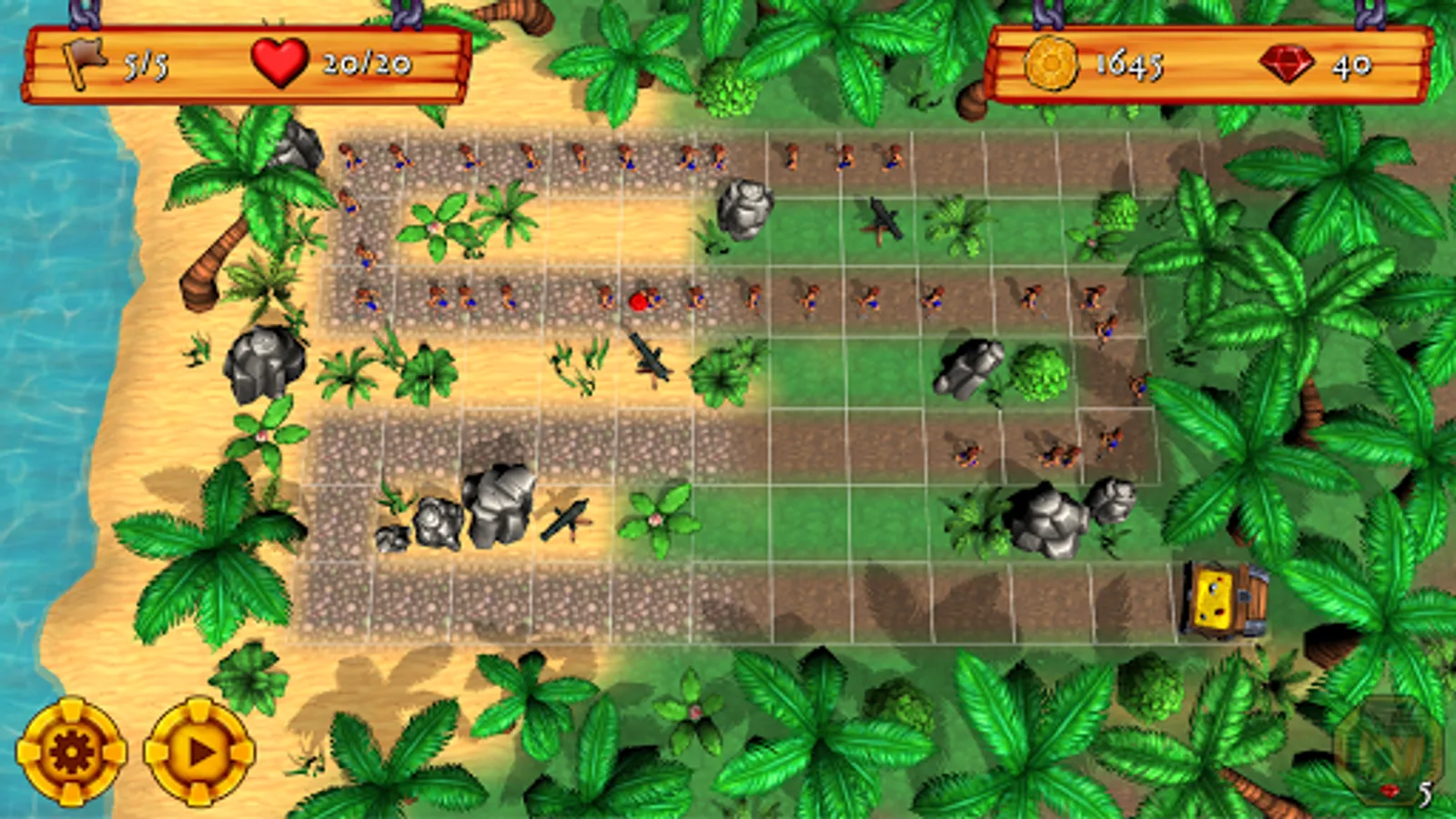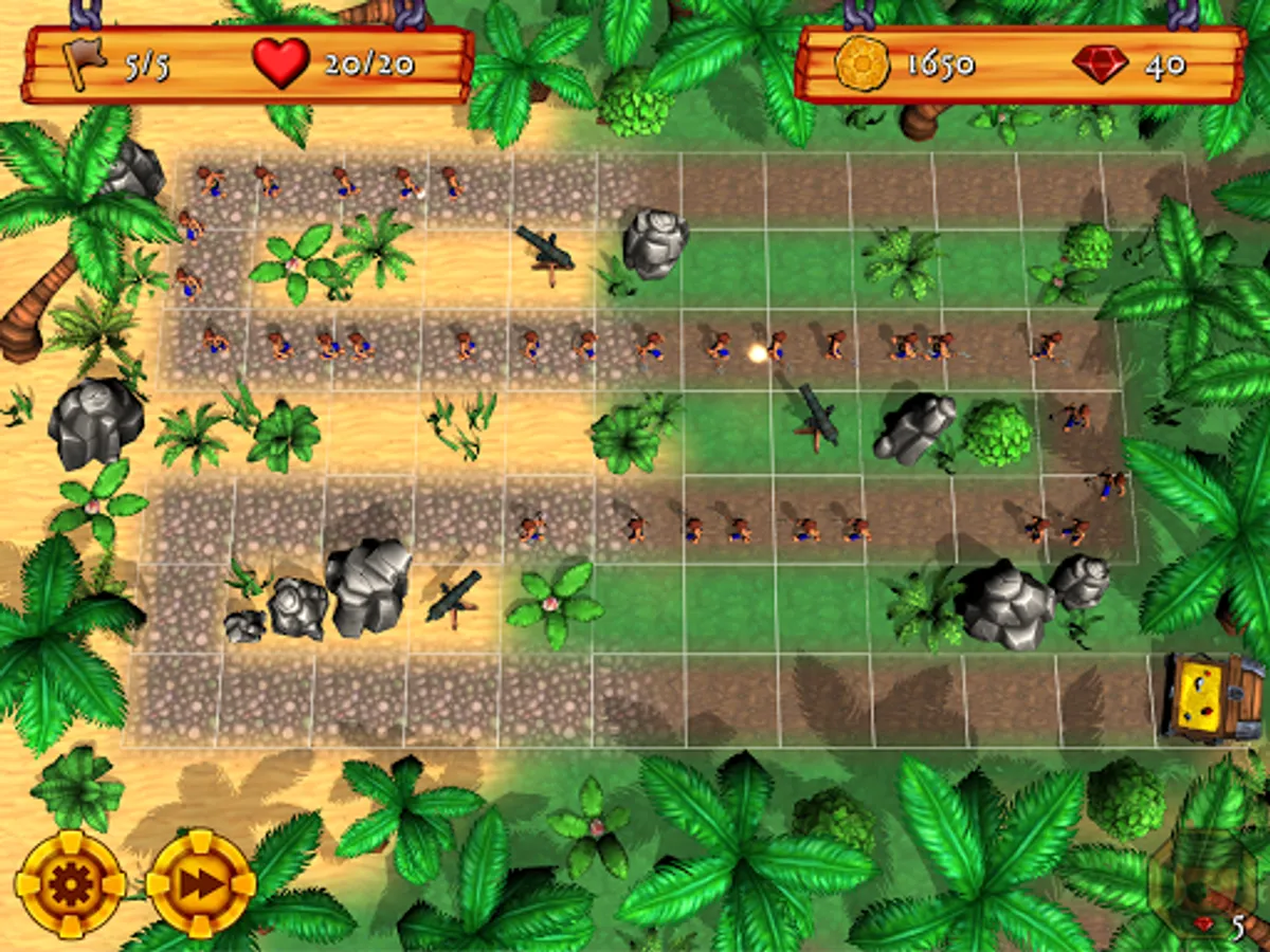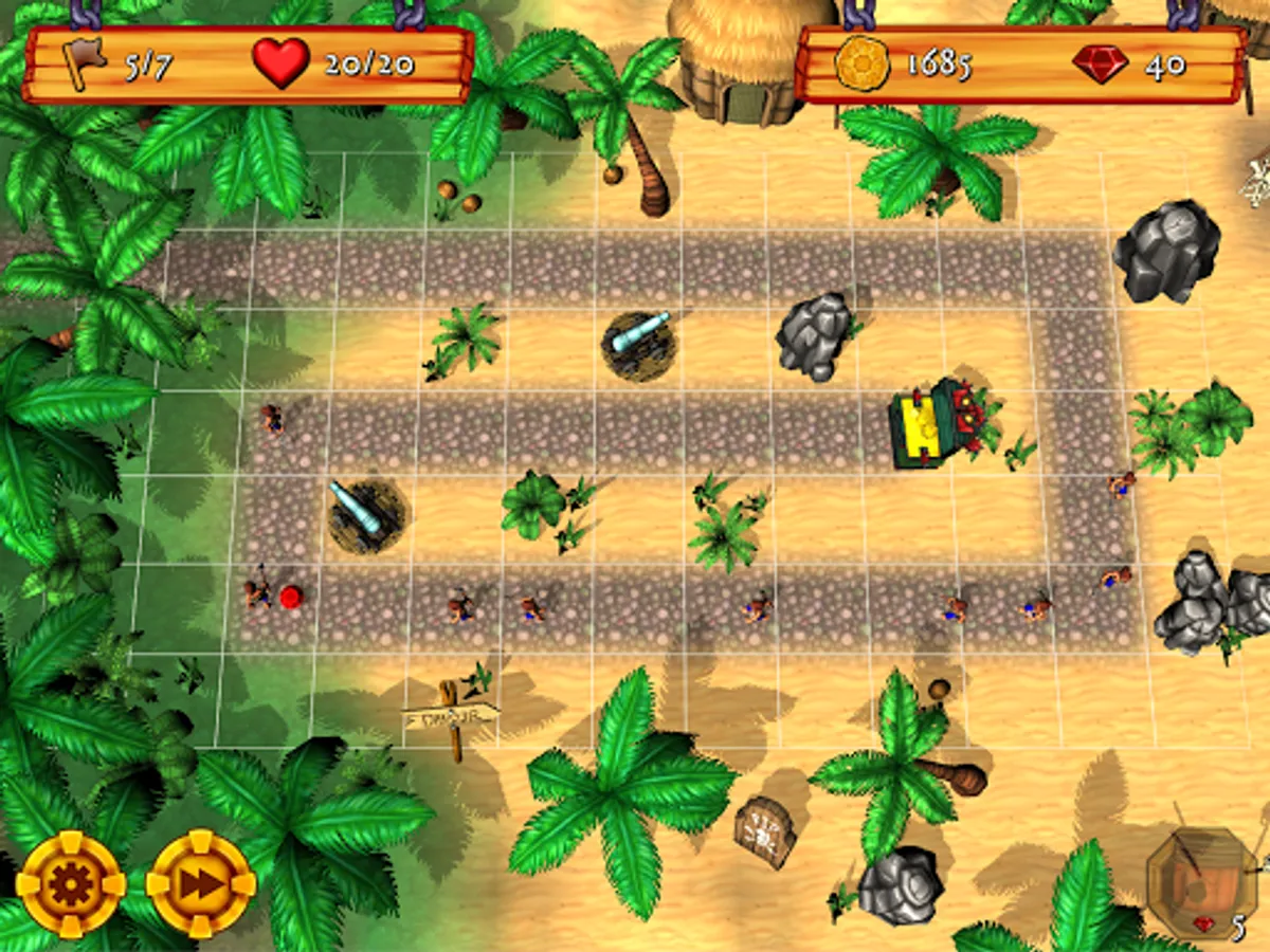 In classic tower defense style, the aim of the game is to place cannons in strategic locations to wipe out multiple waves of enemy grunts before they reach your treasure.