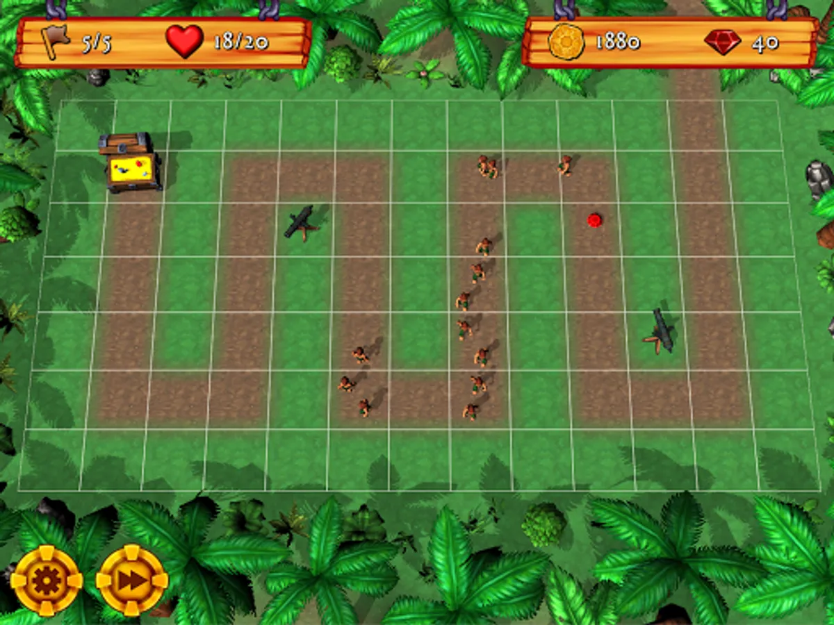 Tap an empty grid square to build a cannon using your precious gold coins. Killing certain enemies will reward you with gold coins which you can spend on cannons, upgrades, and repairs. Tap on a cannon at any time to sell, upgrade, or repair it, or to change its target priority. Unlock new cannons as you progress, and upgrade them for enhanced firepower and special effects!