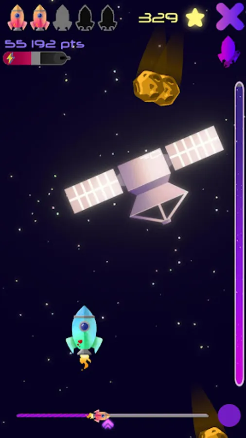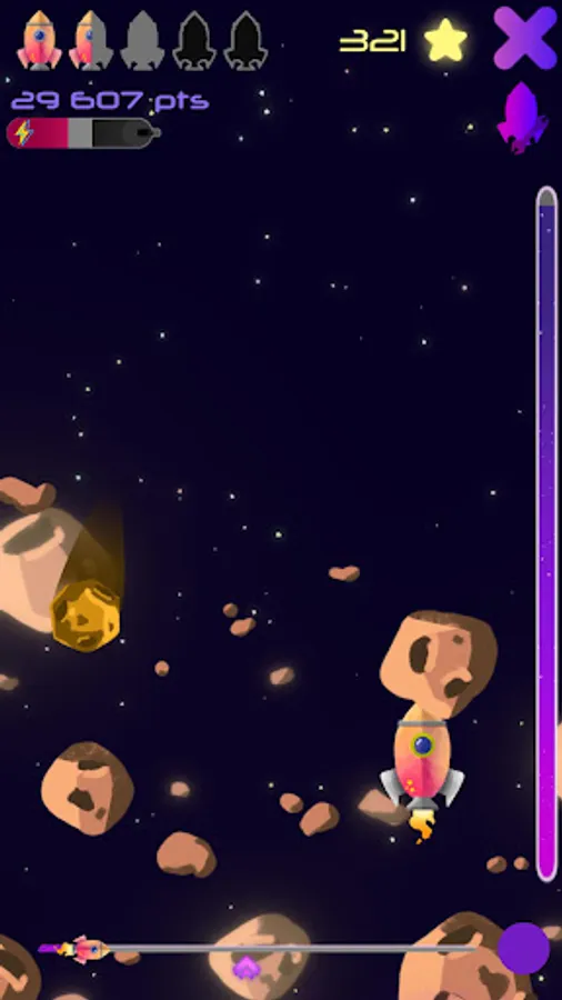 Embarquez a bords de votre fusée, évitez les aliens et les météores pour vous frayez un chemin dans l'espace !