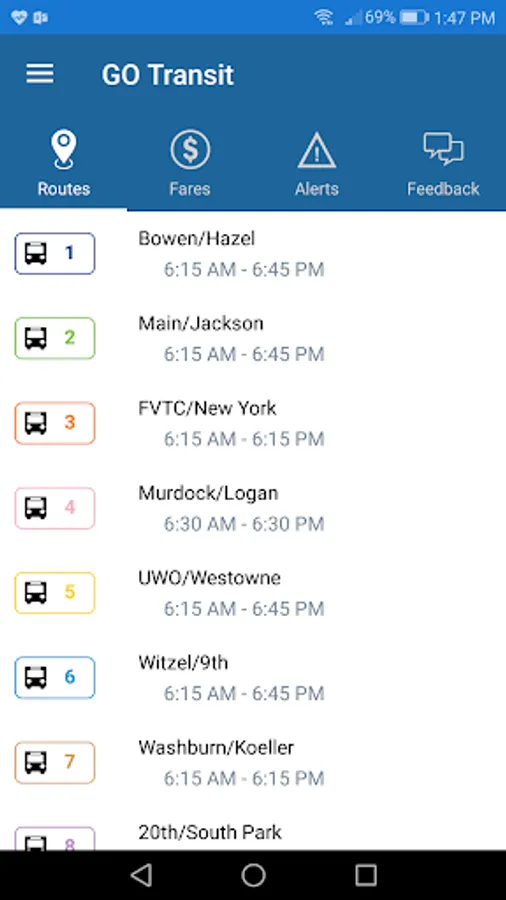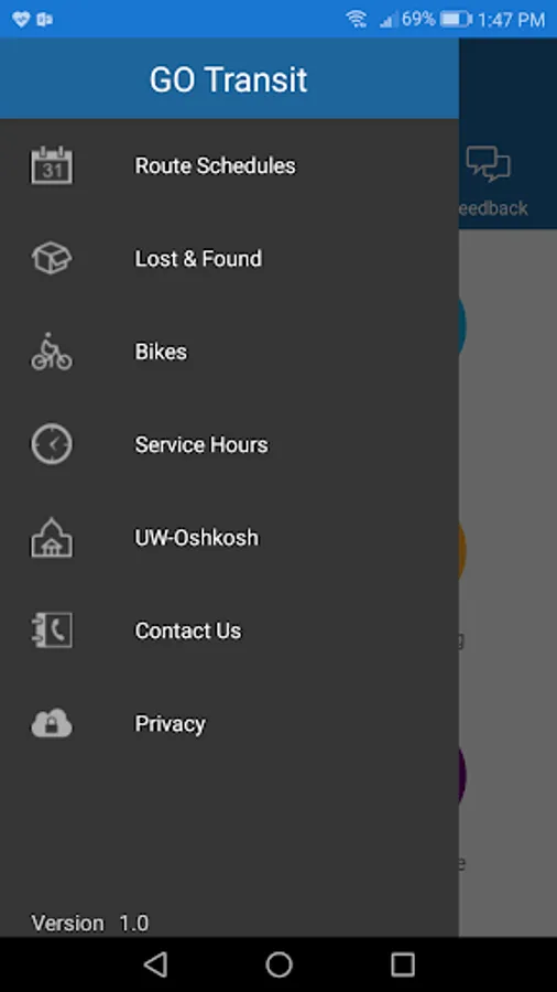 GO Transit provides real-time mapping of all active buses on their routes in the greater Oshkosh area. Route times, fare information, alerts, bus stop locations and detailed route information are all available with the GO Transit app.