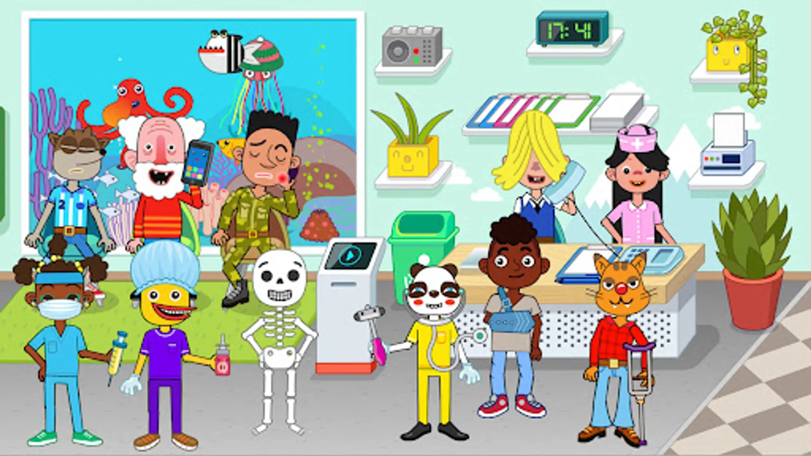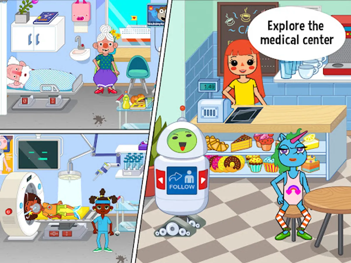 Explore dozens of cute, fun and unique characters: humans, pets, monsters, aliens and a little newborn. All of them are waiting for you! Join Pepi characters, explore medical centre, have fun while playing and create your stories.