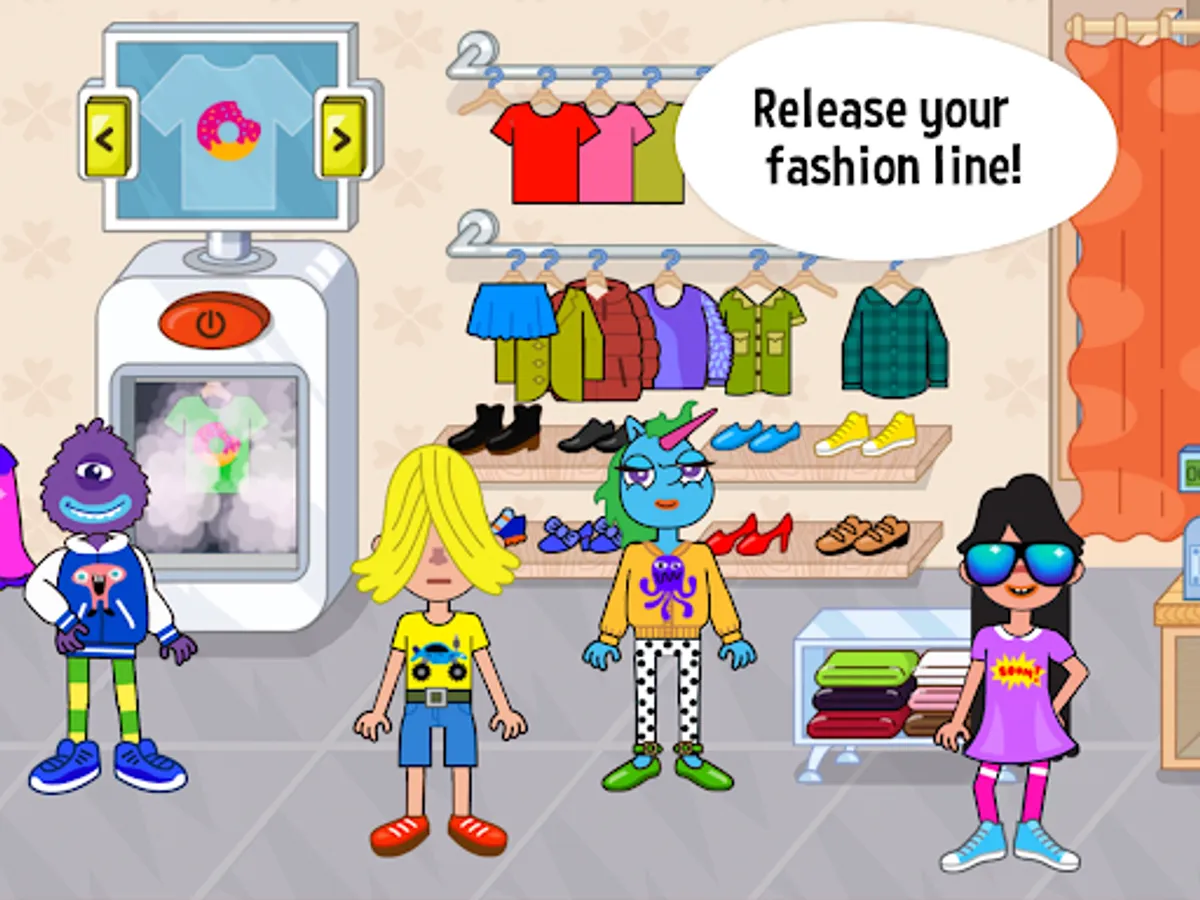 Join Pepi characters and explore fabulous shops and awesome activities in the supermarket! Become a fashion designer and create your own clothes, visit a popular hair salon or a cute restaurant, explore clothing stores or create your own musical hit - everything is possible in Pepi Super Stores!