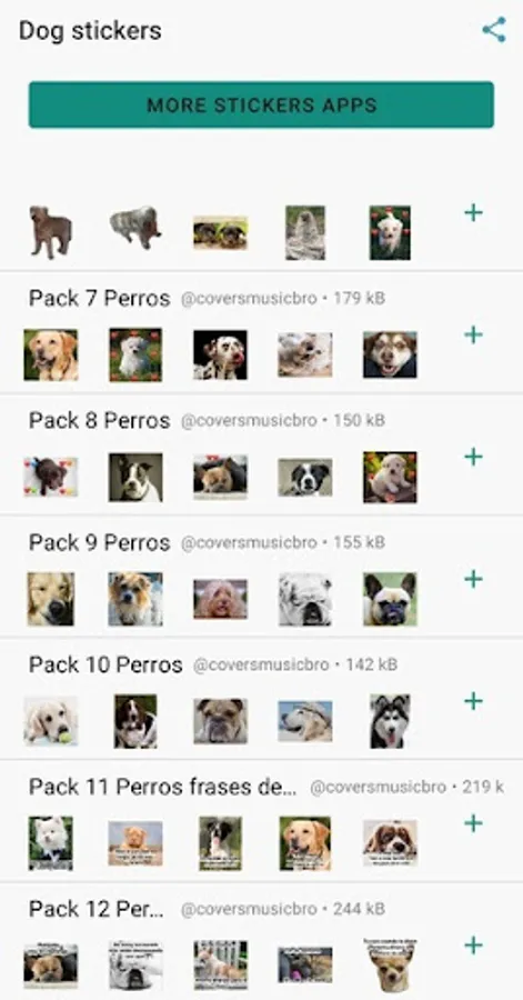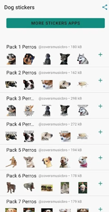 The application has Stickers (Stickers) of Dogs, some without phrases and others with phrases. It also contains some dog meme stickers. The Stickers can be downloaded to be able to use them. The application will be continuously updated so that you have new Stickers. Contains Stickers of tender, funny, cute and pretty puppies. There are Dalmatians, Golden Retrievers and much more.
