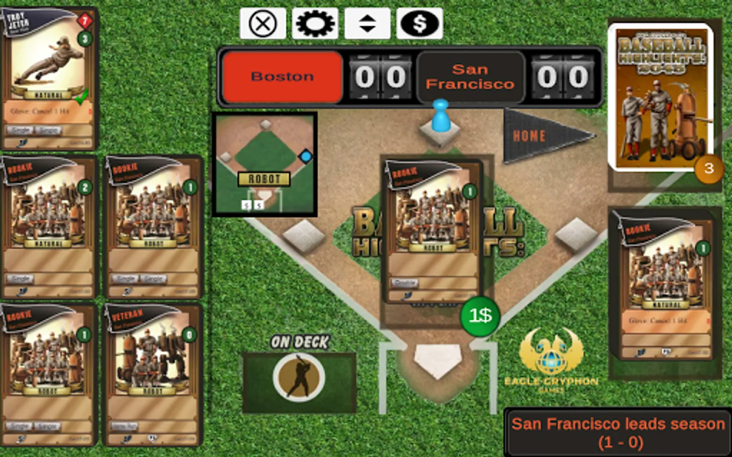 Baseball Highlights: 2045 is like watching TV highlights of baseball games, with the gameplay being full of theme and without bogging down. In this quick and interactive game, players build their teams as they play, combining both front-office strategy and baseball tactics.