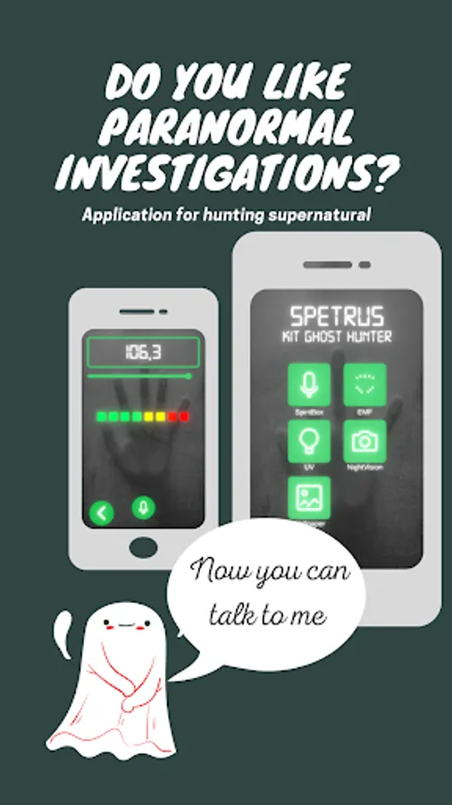 This app contains several tools to help you in your paranormal investigations. Your hunts will never be the same, have fun with the other world, but be careful and cautious, so things don't get out of your control.