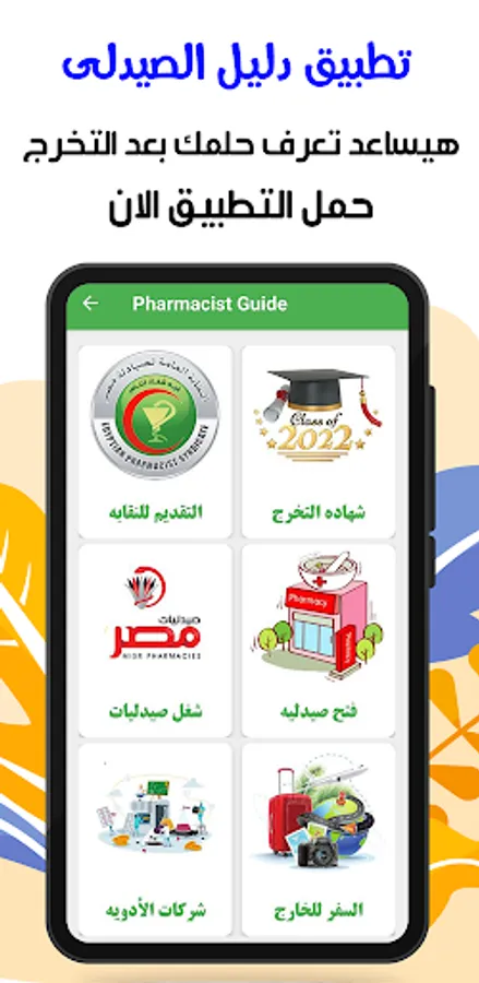 The pharmacist guide application in Egypt is a free service application for pharmacists only without the Internet that aims to help pharmacy graduates to reach their union with ease and knowledge of the etiquette and rules of the profession and the pharmaceutical companies that are dealt with and how to apply to any of them, as well as providing medical content that is useful Pharmacy students and graduates for training in the pharmacy, providing them with job opportunities in pharmacies, how to open a pharmacy from A to Z after applying to the union, the most important steps to be followed to travel abroad, and also providing all the information about the Medical Rep to work in pharmaceutical companies and important sites for students of the Faculty of Pharmacy and other other services Existing on the app like