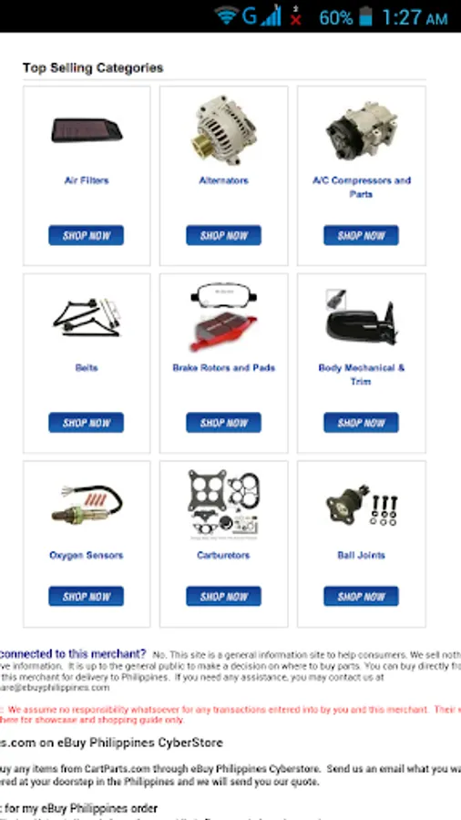 Through this FREE Android APP auto lovers can find all types of auto parts and spare parts for their vehicles. Search any type of accessory from popular auto part stores of Philippines. It covers headlights, coolant, battery charger, fuel treatment, tools, wipers, brake pads & shoes, brake rotor, radiators, water pumps, starters, alternators, wheel bearings, ignition coils, spark plugs, batteries, oil filters, motor oil, belts & hoses, wiper blades, air filters etc. Search and find used auto parts store near me with this APP. You can easily find discount auto parts online in Philippines.