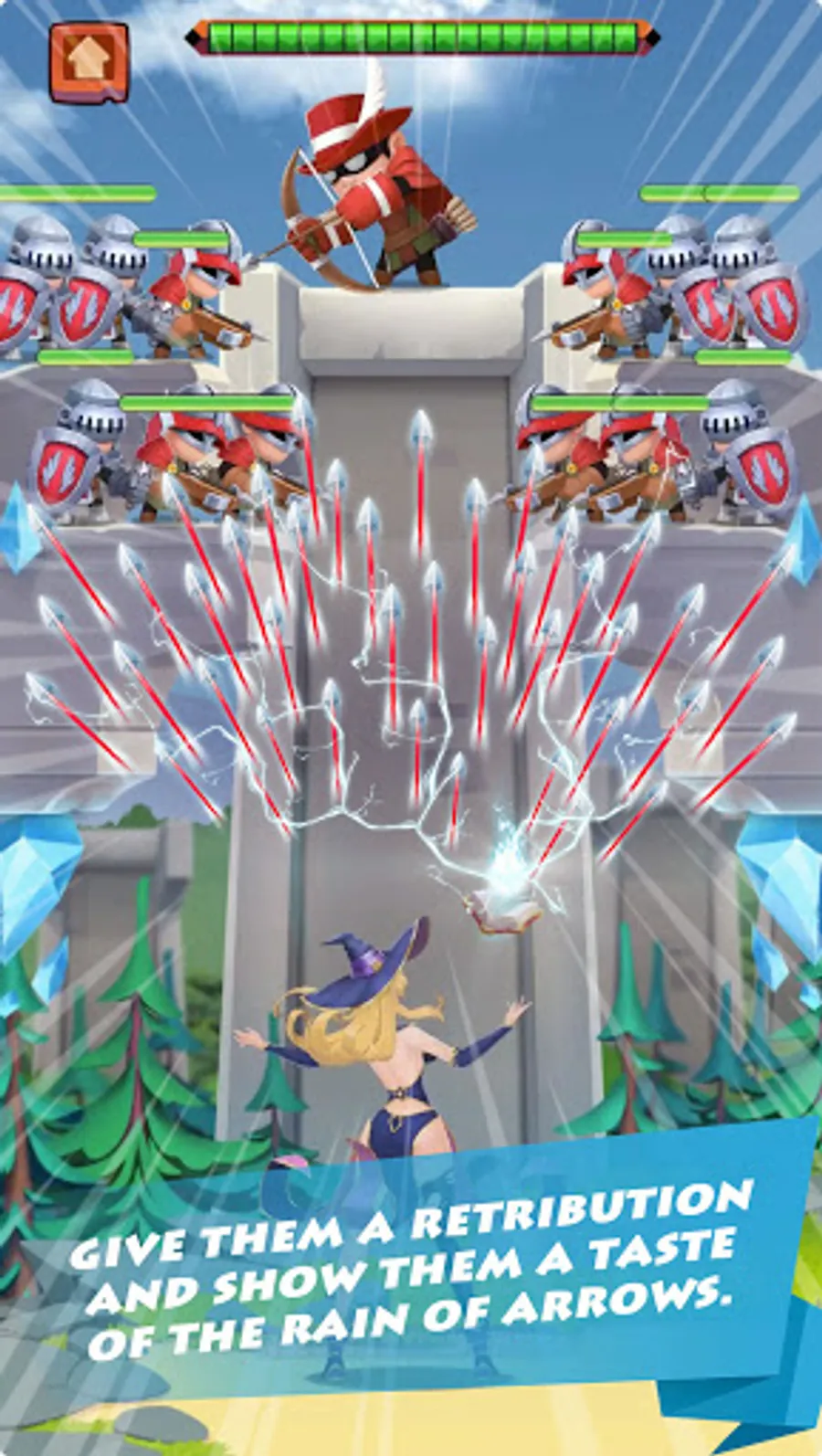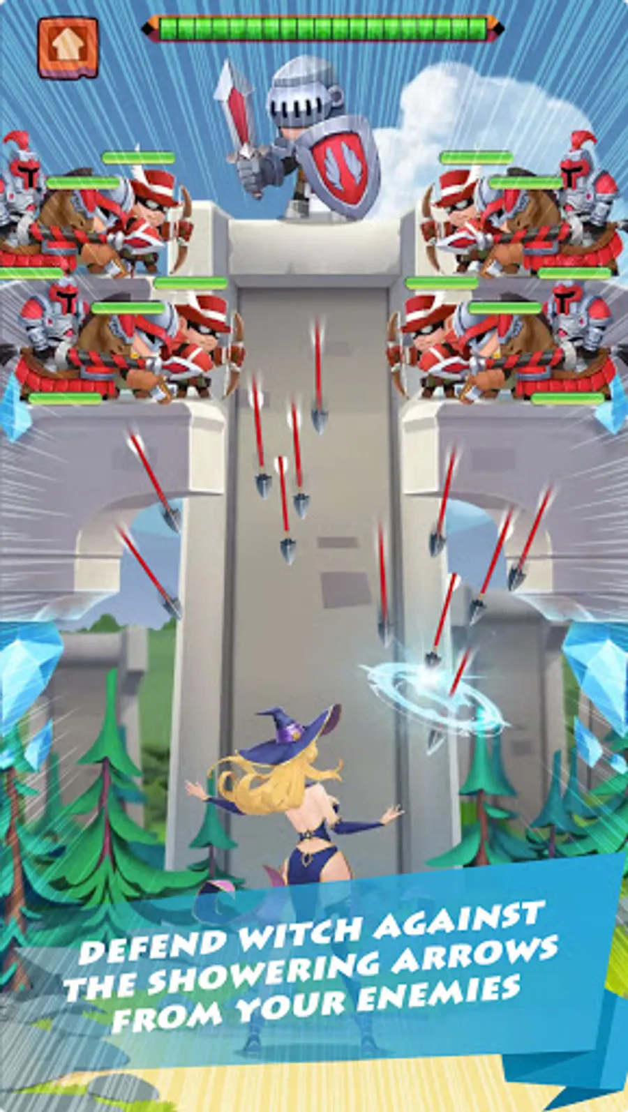 Control the witch, defend yourself against the showering arrows from your enemies, give them a retribution and show them a taste of the rain of arrows, too.