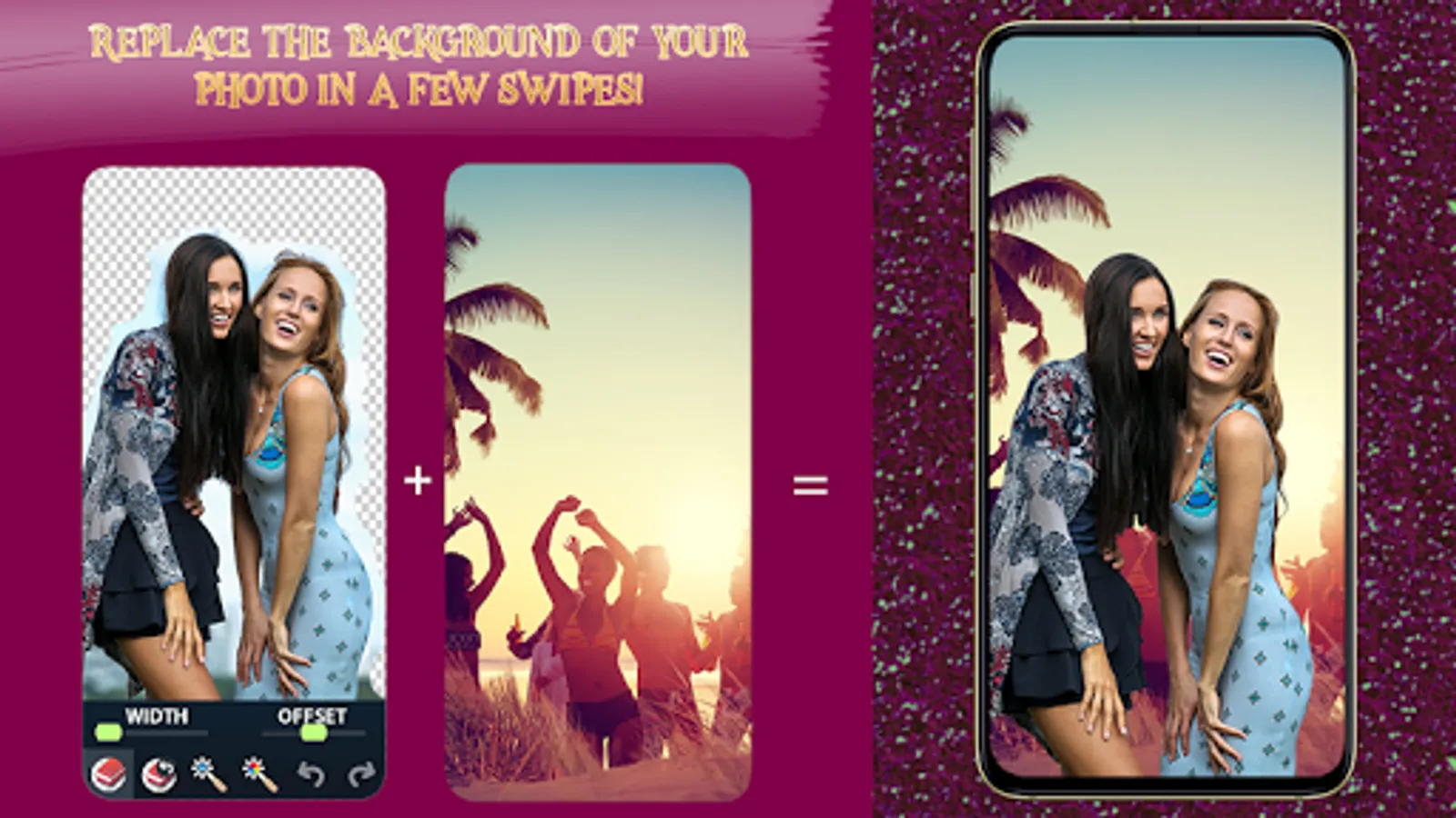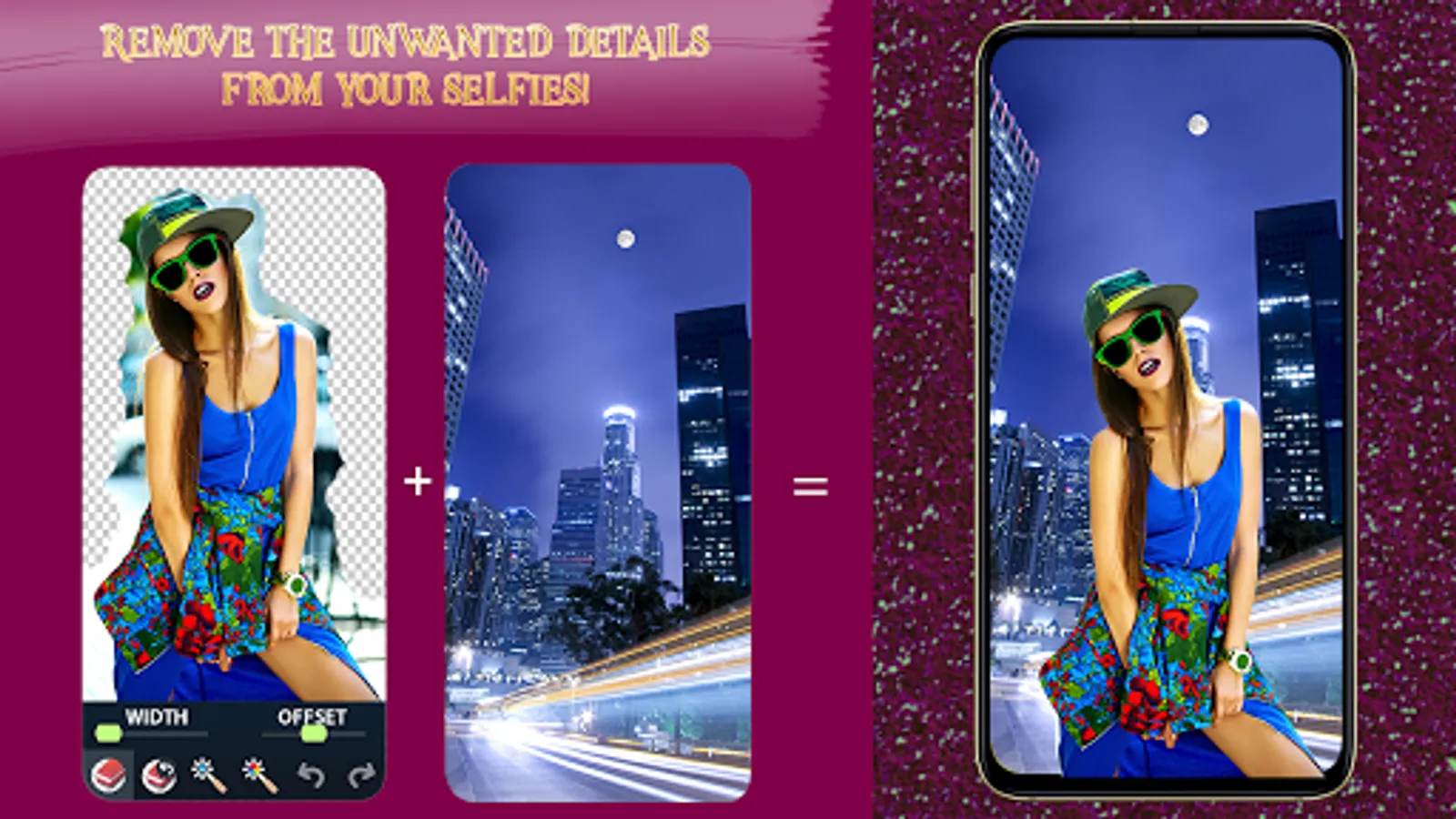✄ Click on a particular color and it will be automatically removed from your photo! You can also add your favorite color as your new clean background to make your picture extraordinary and self-expressive. Photo Background Eraser – Transparent Bg Maker is a new background changer designed to perfectly suit your needs when it comes to the options that picture retouching requires. This auto background eraser is perfect for creating profile photos, cover photos and blog post photos because thanks to its powerful features you can erase image imperfections and all the details sticking out and spoiling your favorite selfies! Now every photo that you take can be just as you want it to be! All the extra elements that ruin the overall look of your picture can vanish forever, leaving you staring in amazement at the result of your little photography trick! Get this free app right now and use it every day an unlimited number of times!