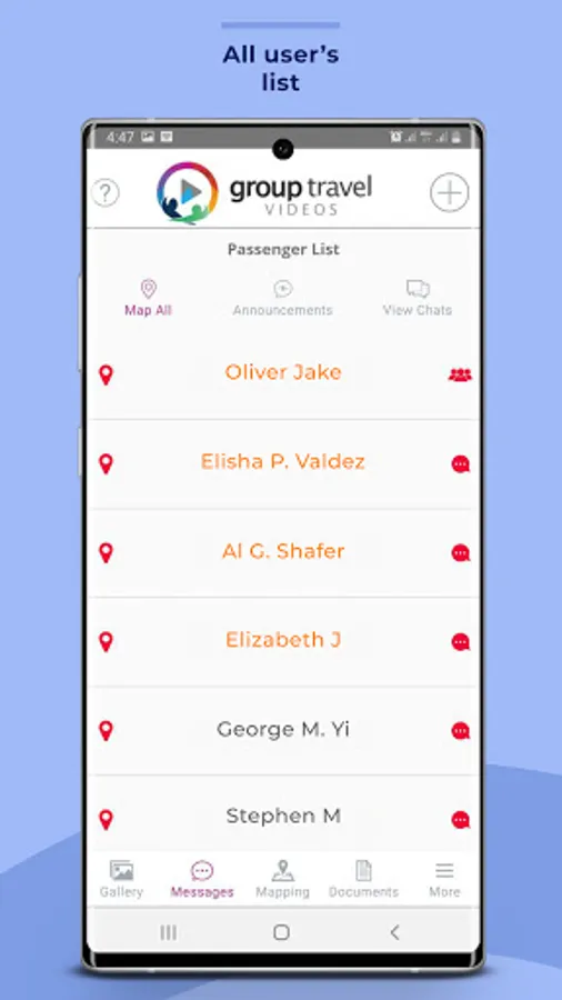 There is also a document sharing feature where all the travelers have access to important information like the itinerary, passenger lists, assignments, and more. Use Word Docs, PDF, or Excel spreadsheets. All the tools a group needs when traveling together.