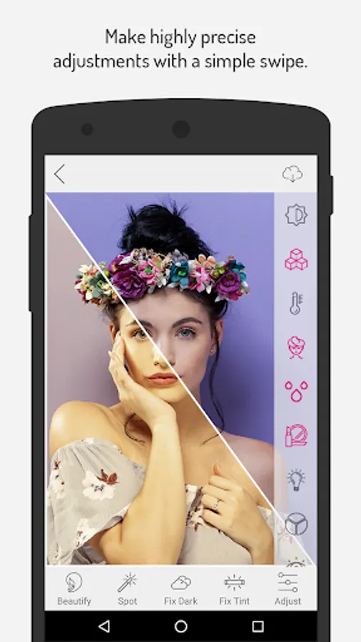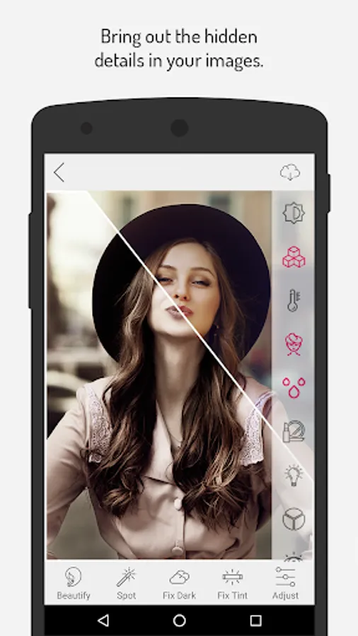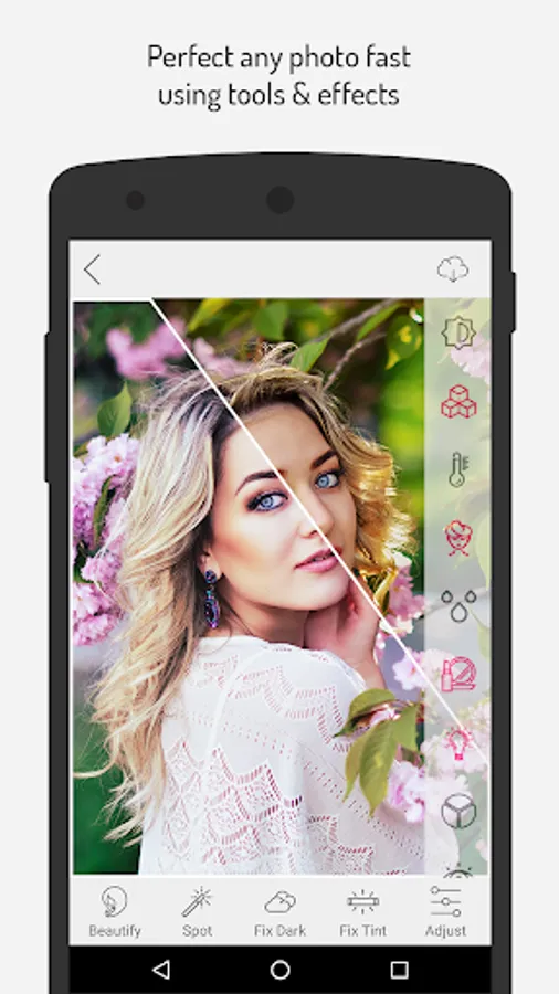 This application is very good for creating stunning selfies and portrait, our’s beautify button offers instant removal of blemishes, dark circles, shine, and red eye.