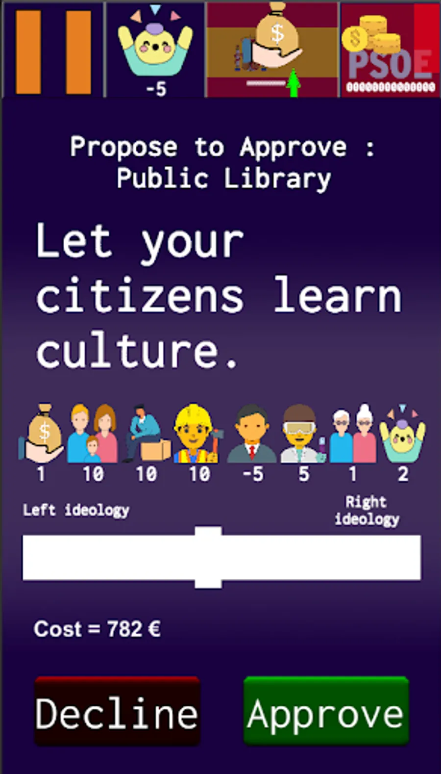 Parliament Tycoon 2 is now in development and will fix most bugs from the game (yeah, we know that there are lots of them). If you buy the game now you will get a free Google Play Store Key for version 2. IMPORTANT: Do not miss your order number (Starting with GPA) because we will ask for it when redeeming Parliament Tycoon 2.