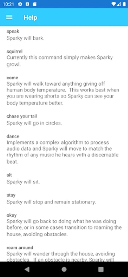 PiPets Robotics: Robot pets powered by Pi. A PiPets robot accepts voice commands like "speak", "sit", "shake", "come", "find", "dance", and many more. If you own a PiPets robot, you can use this app to create a series of commands to be followed by your robot pet using programming flow control commands like conditionals, loops, and counters. It allows access to the sensors and actuators of your robot to create a program for it to follow using an easy to learn programming language called PiPets Robot EPIC (Extremely Powerful Instruction Code). Writing an EPIC program is as easy as speaking natural language phrases. It provides a fun and easy introduction to programming. Other features of the app include configuration of Wi-Fi connectivity to improve speech command recognition, a remote-control page, and the ability to update your robot's firmware as new features are developed.