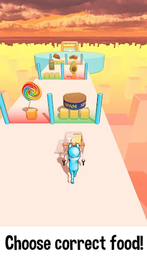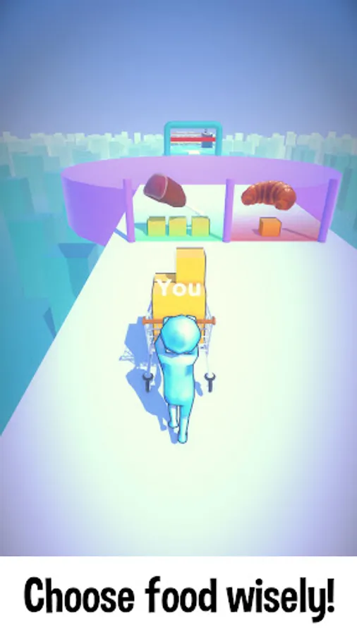 You should choose your food wisely because childish and tiny options will not be helpful during fighting! You need to grab as many food boxes as you can, bump other players to steal their boxes, and knock them out of the arena to be the first one at check out - your last check out!