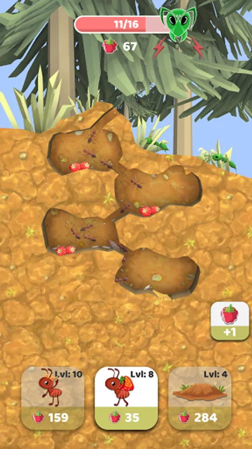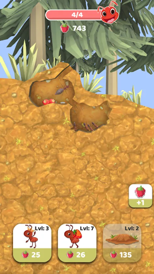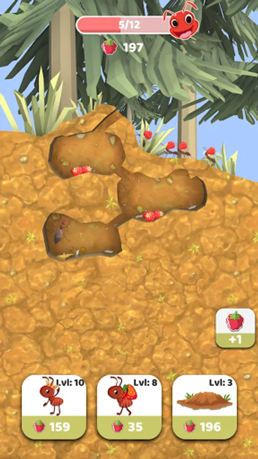 A wonderful game about life in an anthill. You need more rooms to grow new tiny ants. You need to go on a dangerous journey into the forest to find food. You need to protect the queen from the attacks of large ants.