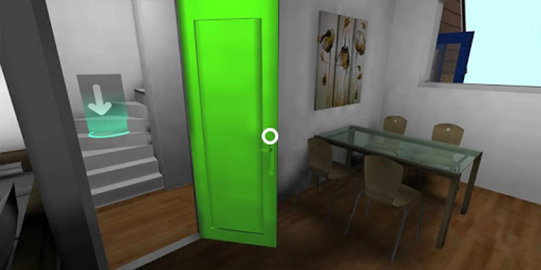 The house has been modeled from its building sketches, provided with furniture, lights and navigation accessories. You can look around by dragging with a finger and move around by tapping.