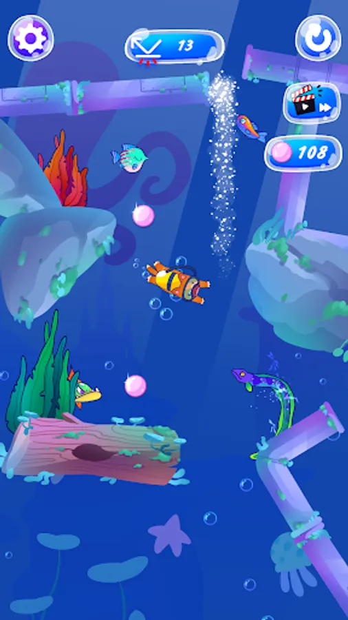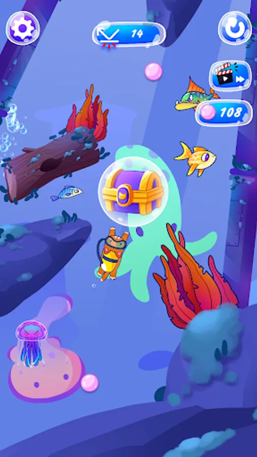 Simba Fishing - an exciting fishing game where you have to help the cat Simba catch all the fish with the least amount of bounces. Choose Simba's direction of movement to reach the goals faster, complete levels and earn stars for the best results. Don't forget to check the chests on the levels - they will help you unlock new outfits for Simba in the store. Enjoy the engaging gameplay and beautiful graphics in Simba Fishing!