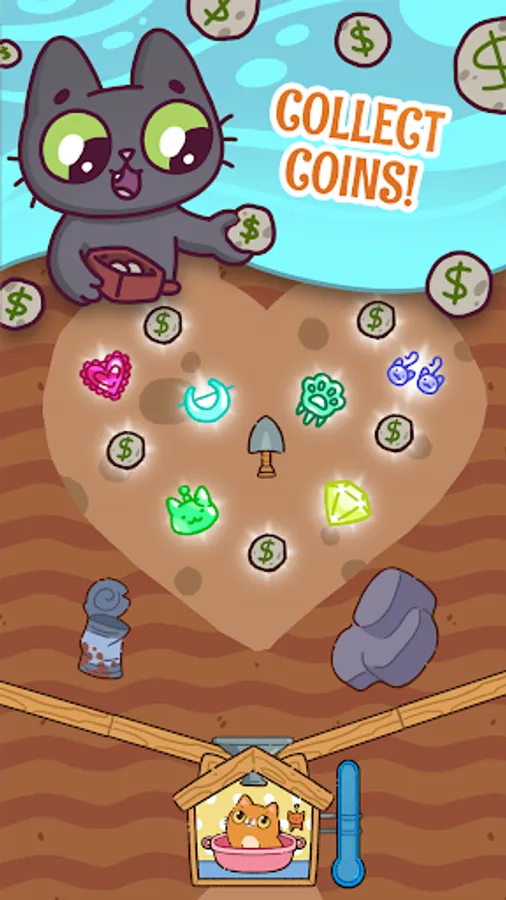 During your excavations, you may discover buried treasures. Connect them together to obtain water and progress to the next level. With the collected coins, you'll be able to purchase new treasures that will help you overcome challenges on the way to the house.