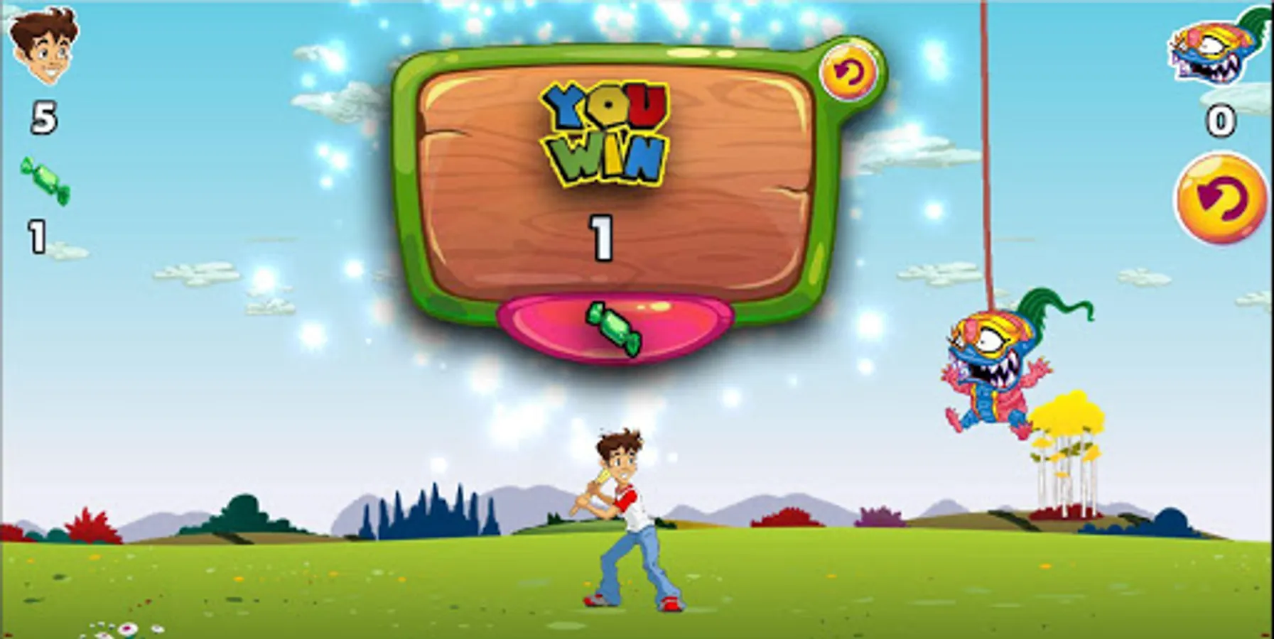 Enjoy controlling a cool 2d animated character and help him beat up this crazy evil Pinata like thing.
