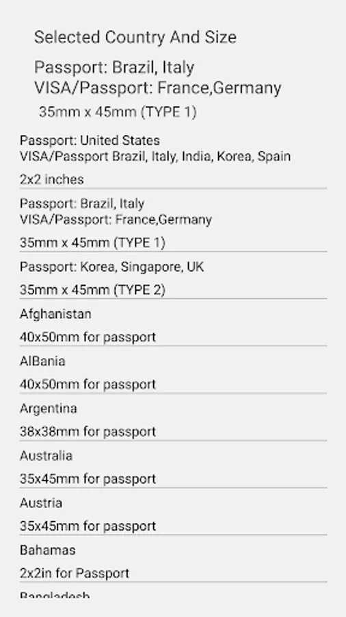 Now you can easily create passport size photos for passport, visa or even driving license and ID cards for all the countries like USA, Canada, India, Italy and more. See complete list below.