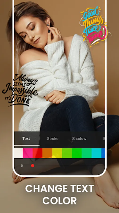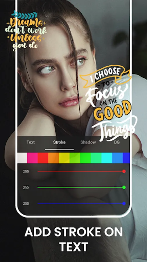- Change the width of text as well as apply stroke over it with multiple color options.