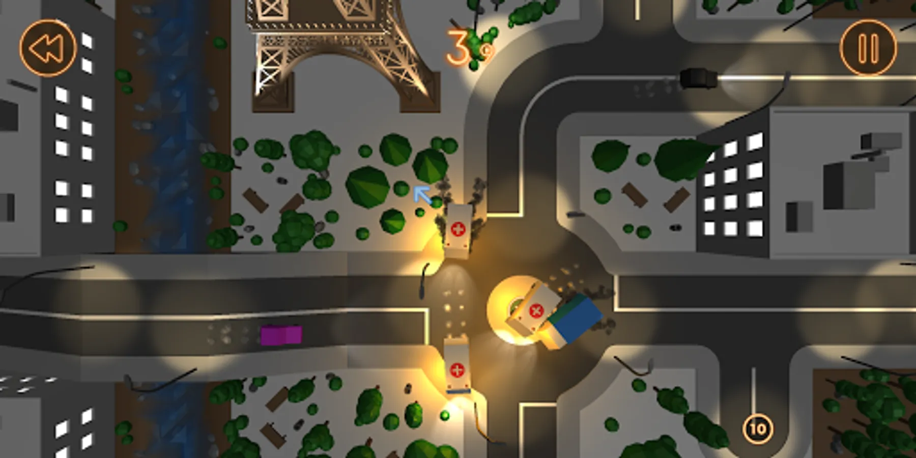 You drive a single vehicle with a destination and you decide the way, but beware! In each round you will cross with all your previous vehicles and their routes.