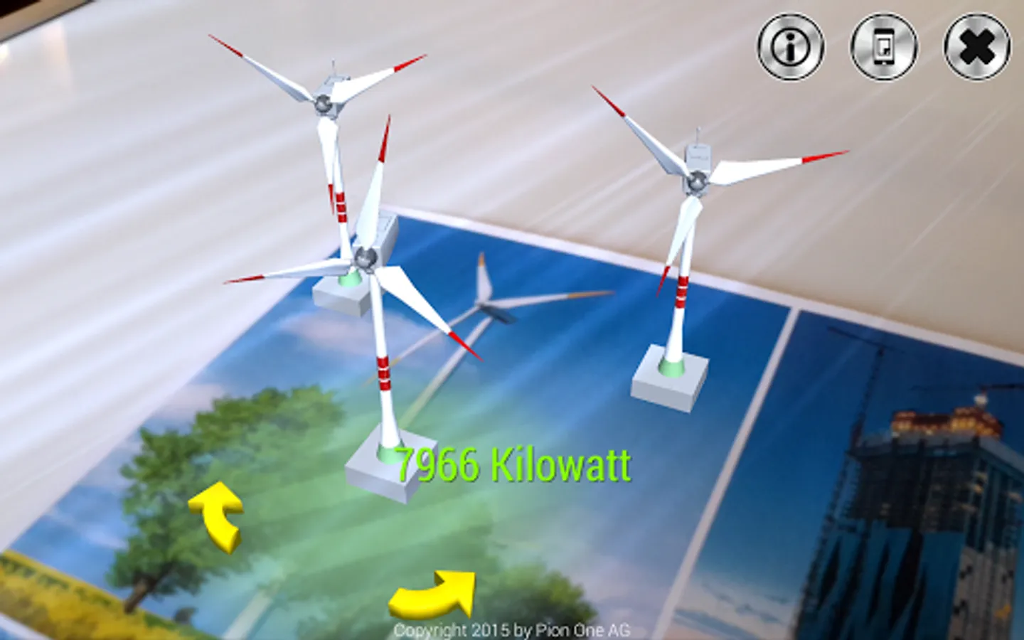 Lifts moving, the wind turbines can be viewed from all angles and speed,