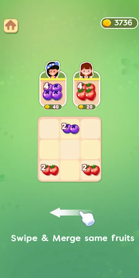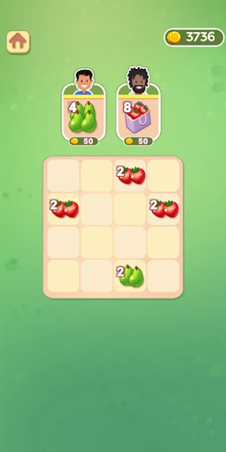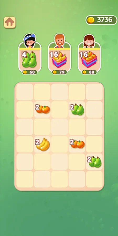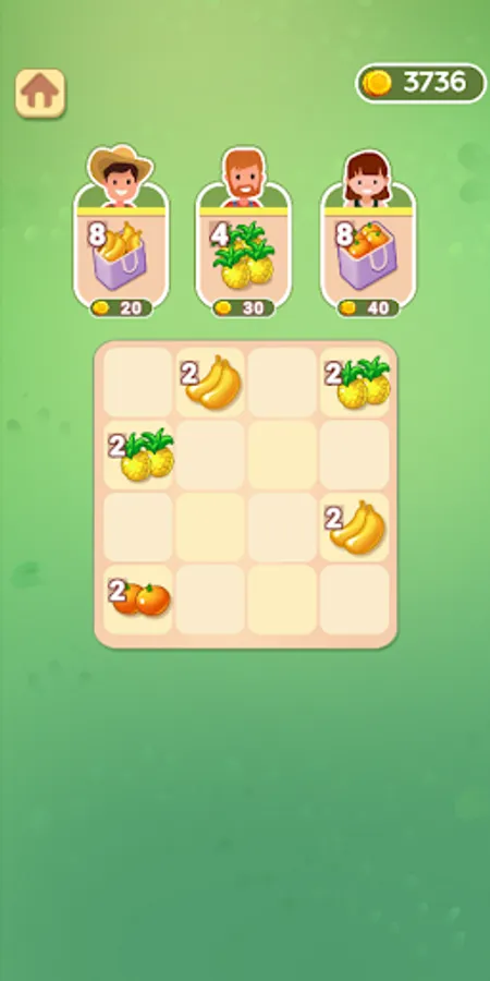 Fruit frenzy is inspired from classic 2048 game where you have to collect the fruits and then sell them to customers. Can you finish their all orders?